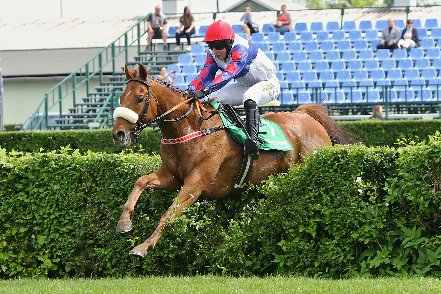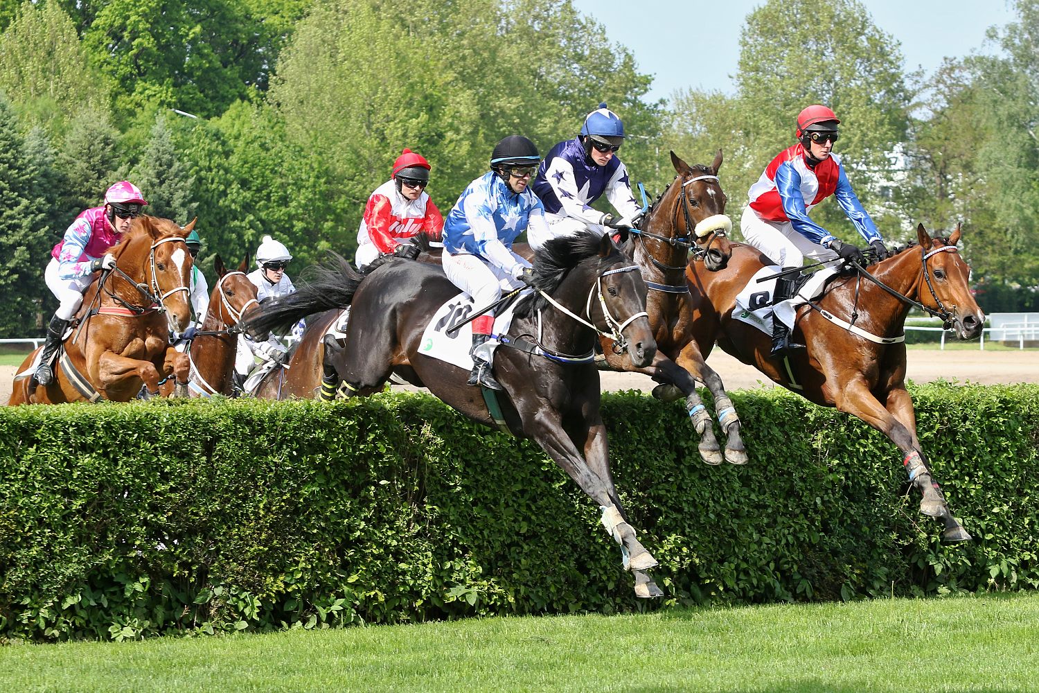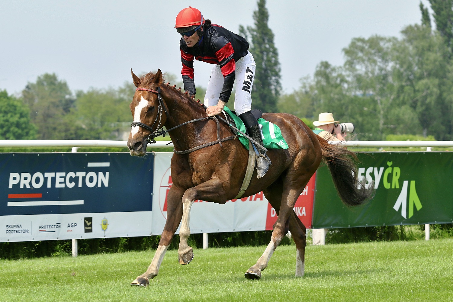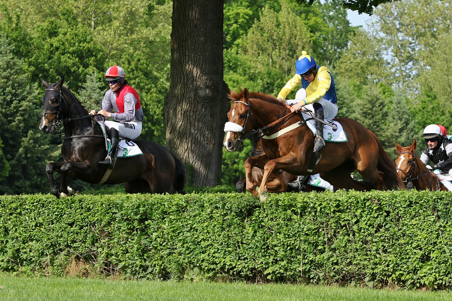 S dalších šesti dostihů, které se ten odběhly vybírám ten poslední - Cenu Skupiny Protecton (STCC, IV.kat.,3200m.) - vypsaný pouze pro 4leté koně. Na startu se sešlo 6 mladých koní, desetinovým favoritem byl FORT MEDOC (ž .J. Faltejsek). Po nešťastné kolizi na Poplerově skoku, kdy nejdříve zavadil a upadl vedoucí CONSPIRATIONIST (A. Čmiel), o něj zakopl STORMMY (ž.M.Liška) a padl i poslední v poli SUPREME VEGA (ž. J. Kocman), pokračovalo v dostihu pouze trio FORT MEDOC, SARDINIE (ž. J. Odložil) a GREAT STORM (ž. J. Kratochvíl). V tomto pořadí proběhli cílem a vítězný žokej Jan Faltejsek nešetřil kritikou nad těžkým kurzem vypsaným pro mladé, začínající překážkáře.