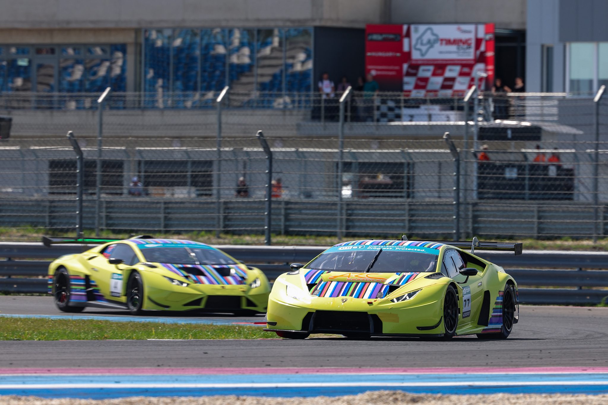 Na druhé místo za safety carem se tak posunul Miro Konopka a třetí v celkovém pořadí kroužil pod žlutými vlajkami Dennis Waszek. Odstraňování žlutého lamborghini trvalo delší dobu a safety car dovedl závodníky až do cíle.