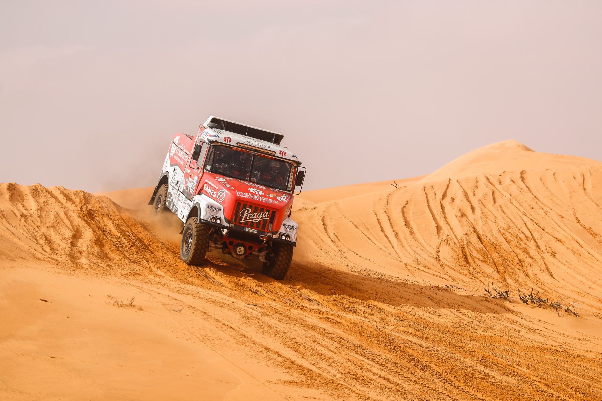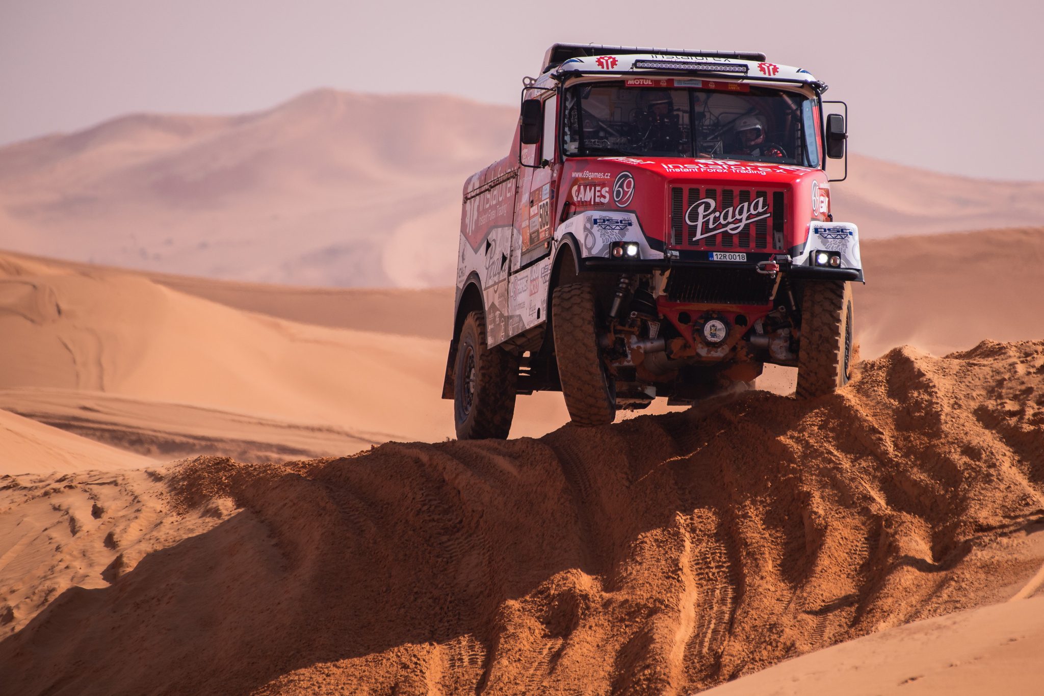 Díky maximálnímu nasazení celého týmu mohla Praga se startovním číslem 508 vyrazit ve čtvrtek 13. ledna do předposlední etapy, o které se už před startem mluvilo jako o nejnáročnější a jedné z nejhezčích z celého letošního ročníku. A sliby organizátorů se vyplnily do puntíku. Na trati speciálky (346 km) se posádky musely vypořádat s náročnými pasážemi velbloudí trávy, zapeklitou navigací, řečišti, kamenitými úseky, ale i obtížnými vysokými a měkkými dunami.