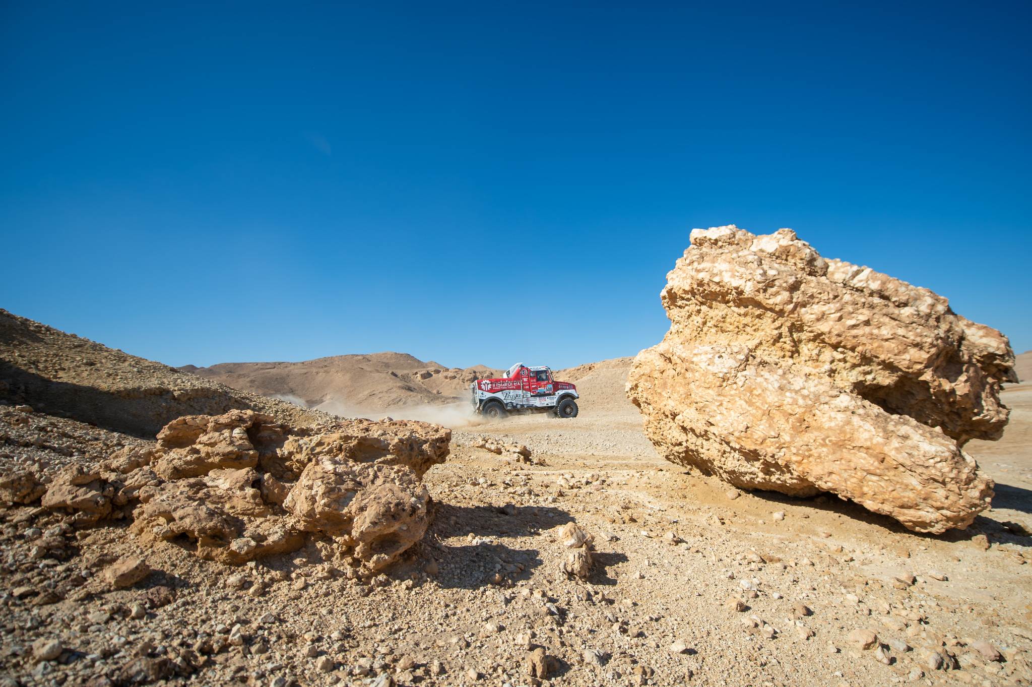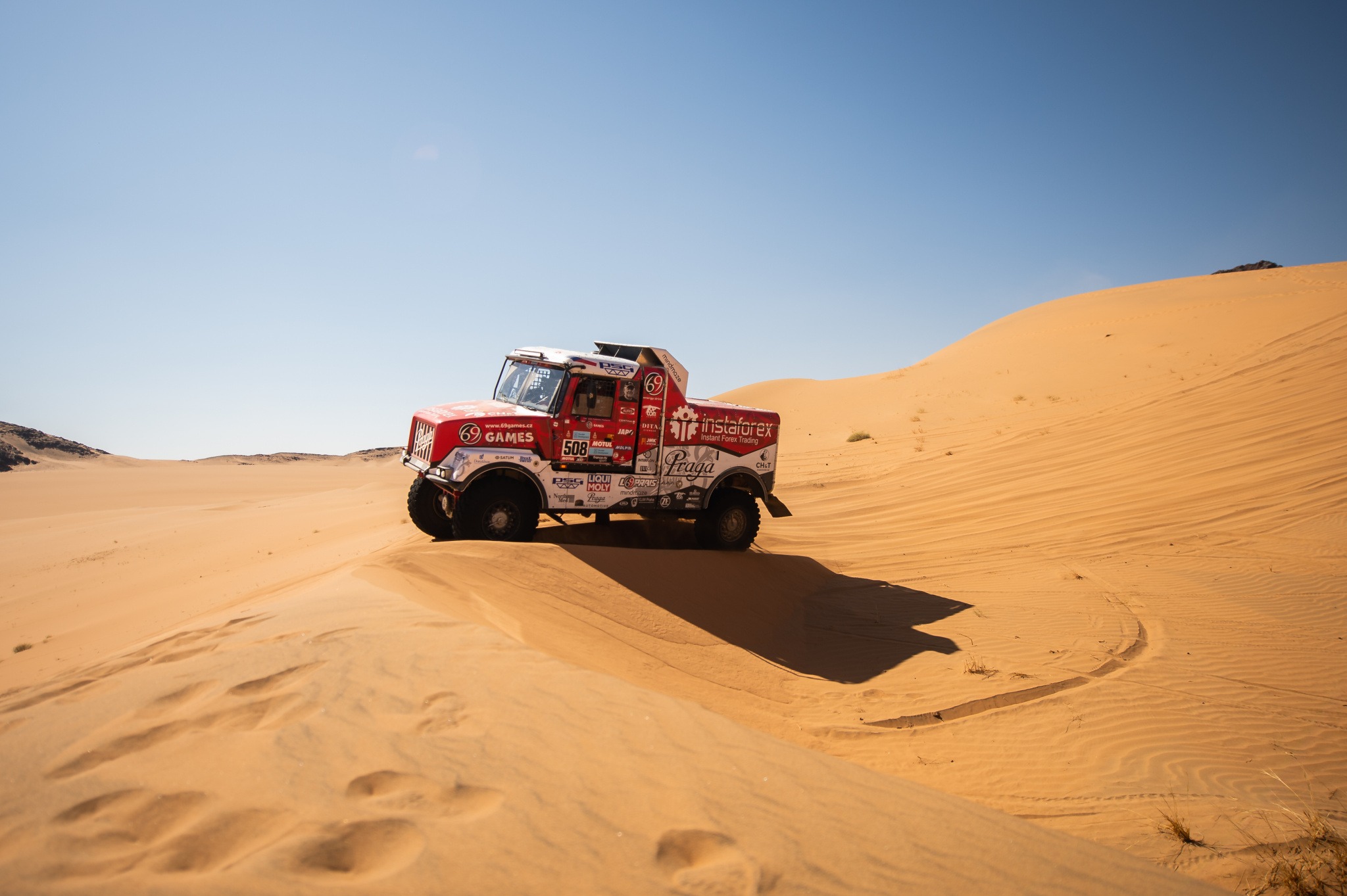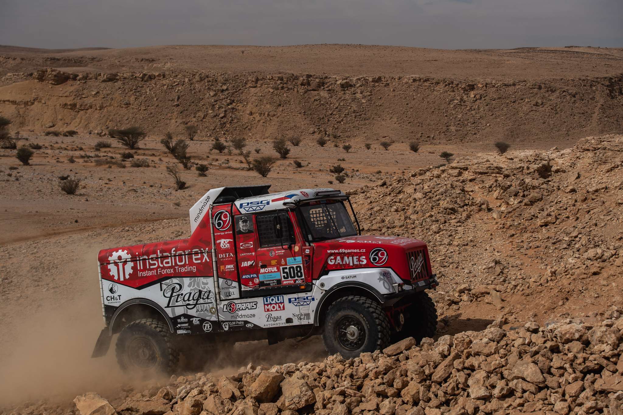 Praga #508 znovu držela vysoké tempo nasazené továrními Kamazy a patřila mezi osmičku nejrychlejších kamionů, které po čtyřech stovkách ostrých kilometrů dělilo v cíli jen o málo víc než osm minut.