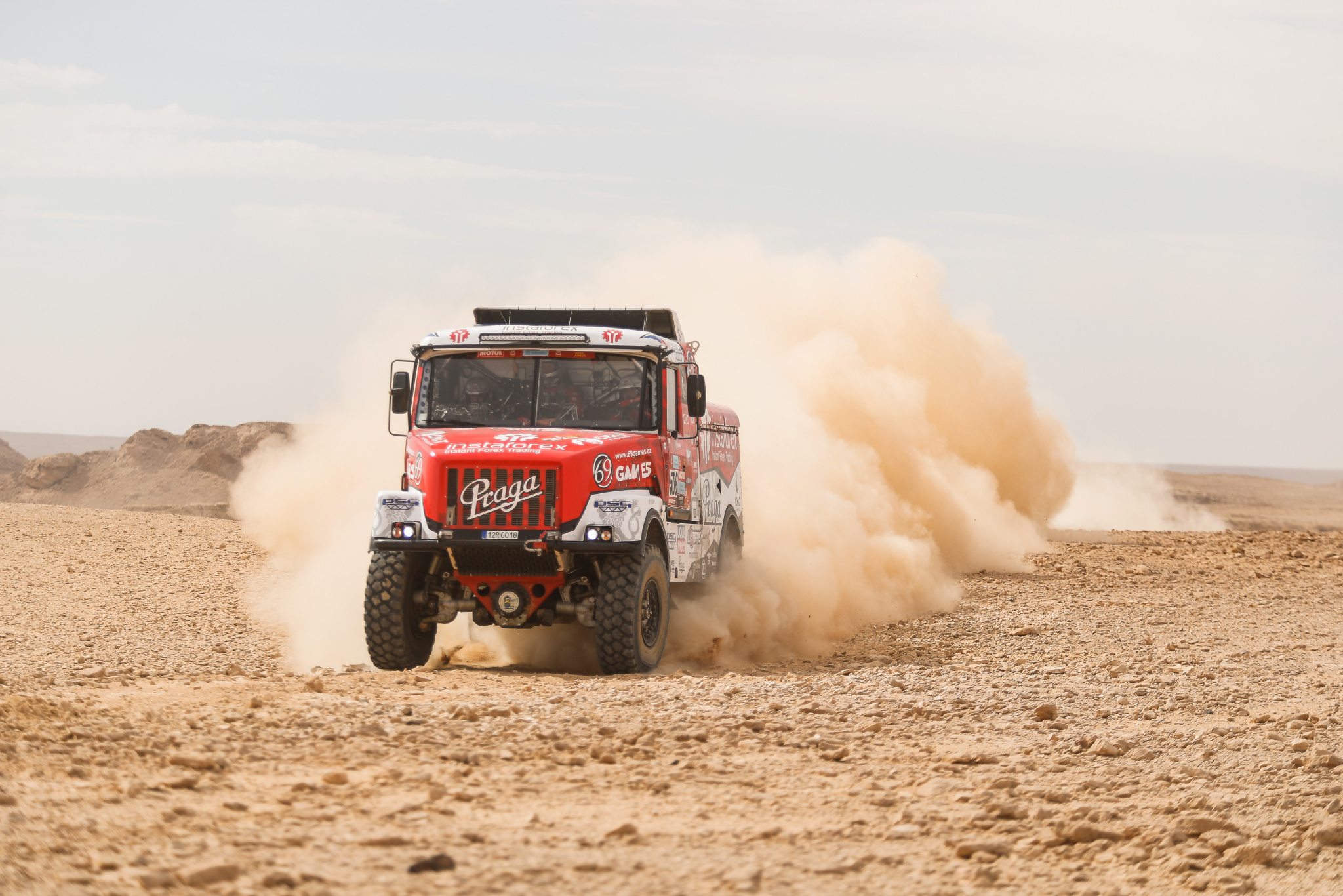 Do druhé poloviny soutěže vyrazila Lady, jak v týmu červenobílému kamionu přezdívají, po intenzivní osvěžovací kůře. Mechanici pod vedením Petra Pokory měli během sobotního volného dne v Rijádu napilno. Pragovku bedlivě prošli od kloubovek, přes řemeny, kladky, svody turbodmychadla, tlumiče a řadu dalších důležitých komponentů až po jednotlivé šrouby, u nichž se kontrolovala míra jejich povolení i případné praskliny.