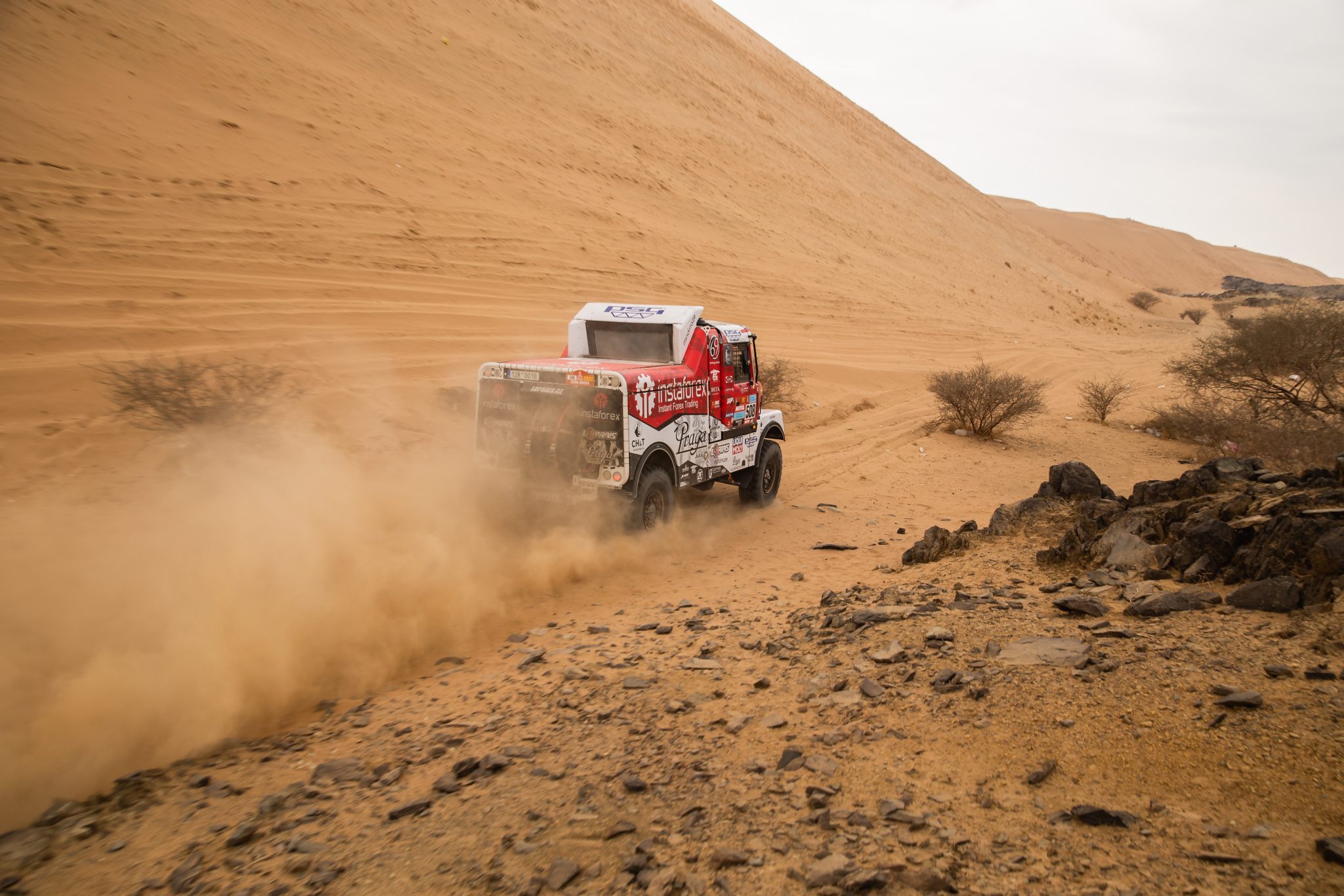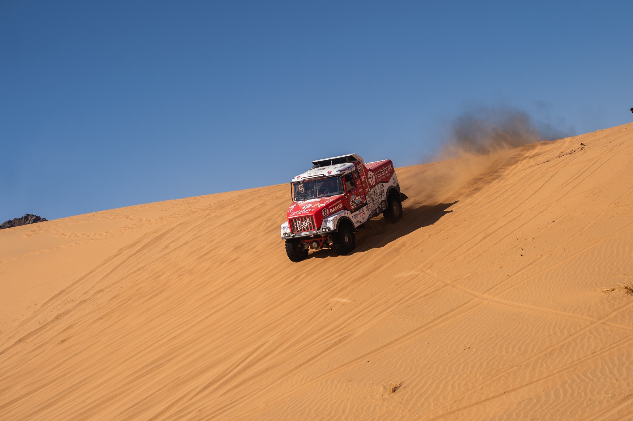 Praga #508 znovu držela vysoké tempo nasazené továrními Kamazy a patřila mezi osmičku nejrychlejších kamionů, které po čtyřech stovkách ostrých kilometrů dělilo v cíli jen o málo víc než osm minut.