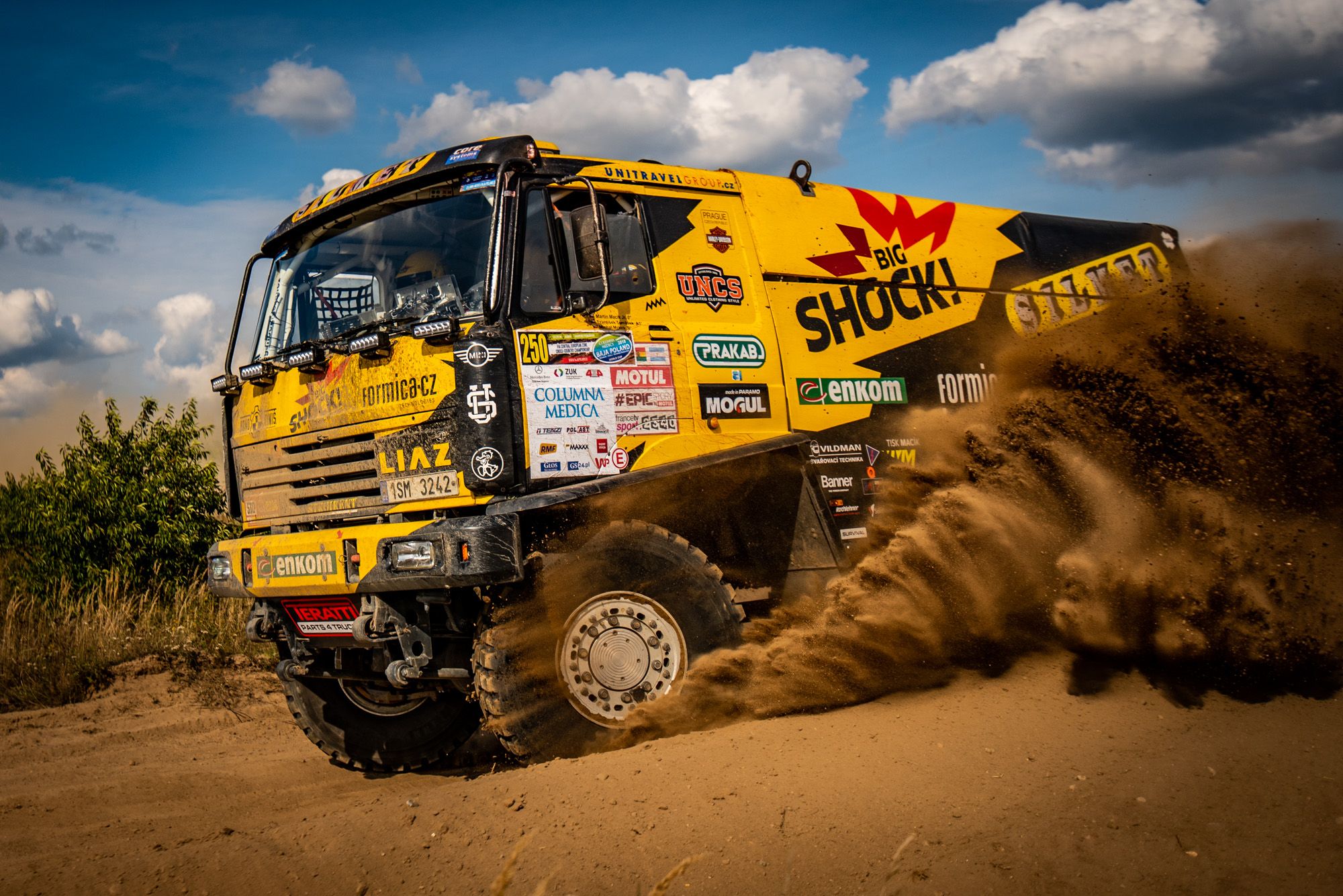 Martin Macík z týmu Big Shock Racing zaznamenal na Baja Poland úctyhodný výsledek. Dojel jako 11. nejrychlejší automobil napříč kategoriemi, nevadilo mu přitom, že byl ve startovním poli jediným pilotem kamionu a soupeřil tak s osobními vozy a buginami, které zdárně nechával za sebou. Jan Brabec, motocyklista týmu, vybojoval perfektní 4. místo, a to i přes omyl organizátorů, kteří ho během hlavních sobotních etap neoprávněně potrestali za krácení tratě. Nebýt nešťastného zásahu pořadatelů do závodu, mohl být jeho výsledek ještě lepší. Z prestižního polského závodu, který je součástí světového poháru FIA cross country, si jezdci týmu Big Shock Racing přivážejí kromě dobrých umístění také neuvěřitelné zážitky. O dramatické momenty nebyla nouze na trati ani mimo ni.