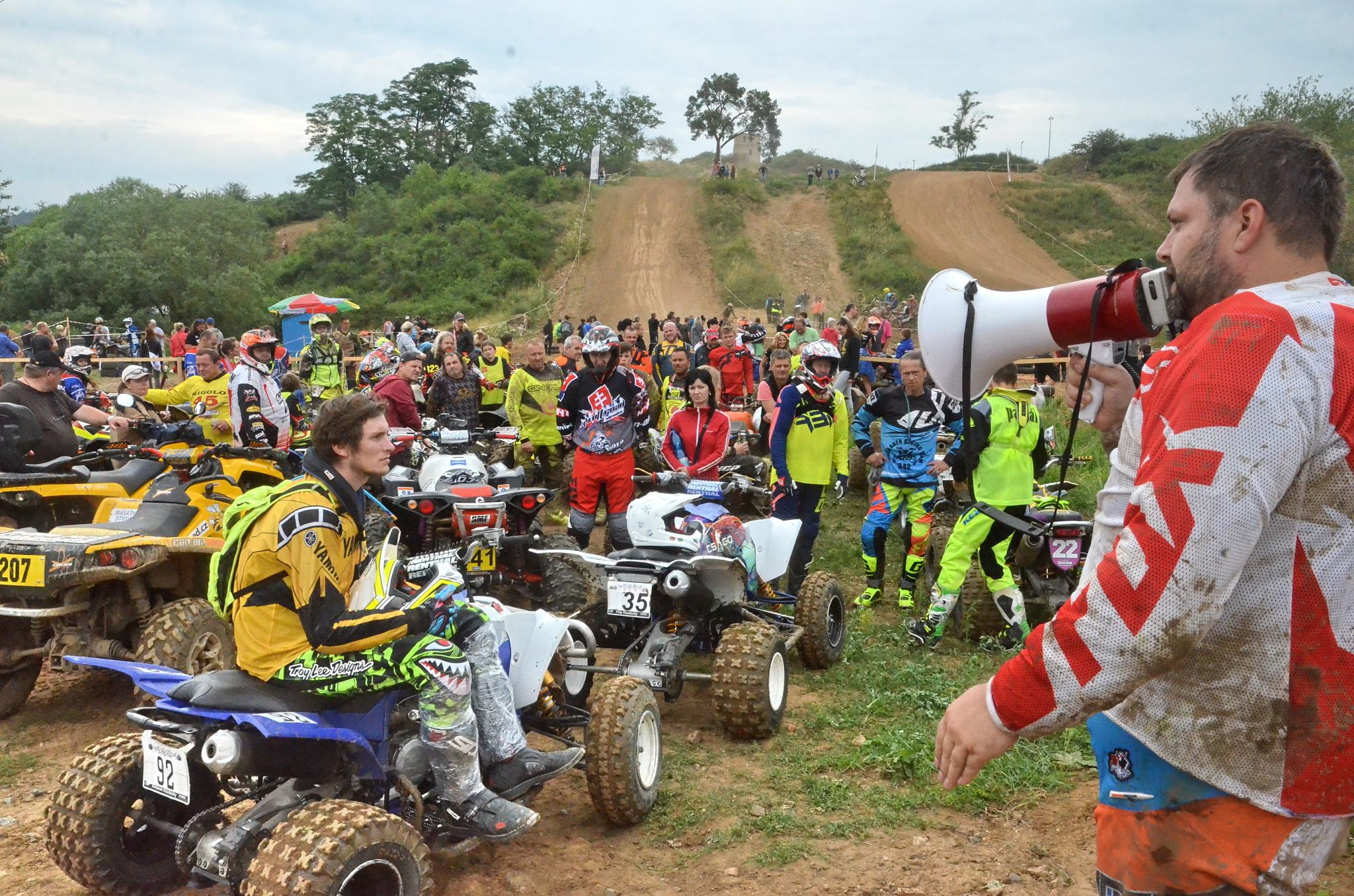 Zatímco motorkáři a čtyřkolkáři jeli ještě suchý závod, nejdelší klání Offroad maratonu se po letech dočkalo hustého deště. Šlovický kopec a jeho okolí kropil s přestávkami a s různou intenzitou od sobotního odpoledne. Naleštěné stroje závodníků se tak změnily k nepoznání a trať klouzala a klouzala. Šestnáct odvážných posádek ukrajovalo metr po metru a modlilo se, aby vydržela technika i síly celého týmu. Nejvíce nánosů bahna si z trati odvážely buginy. Jejich posádky při zastávkách v depu vlastníma rukama shrnovaly, co se dalo. Při závodění se počítá každé kilo, přitom odhad váhy bláta na stroji byl vždy až 300 kilogramů!