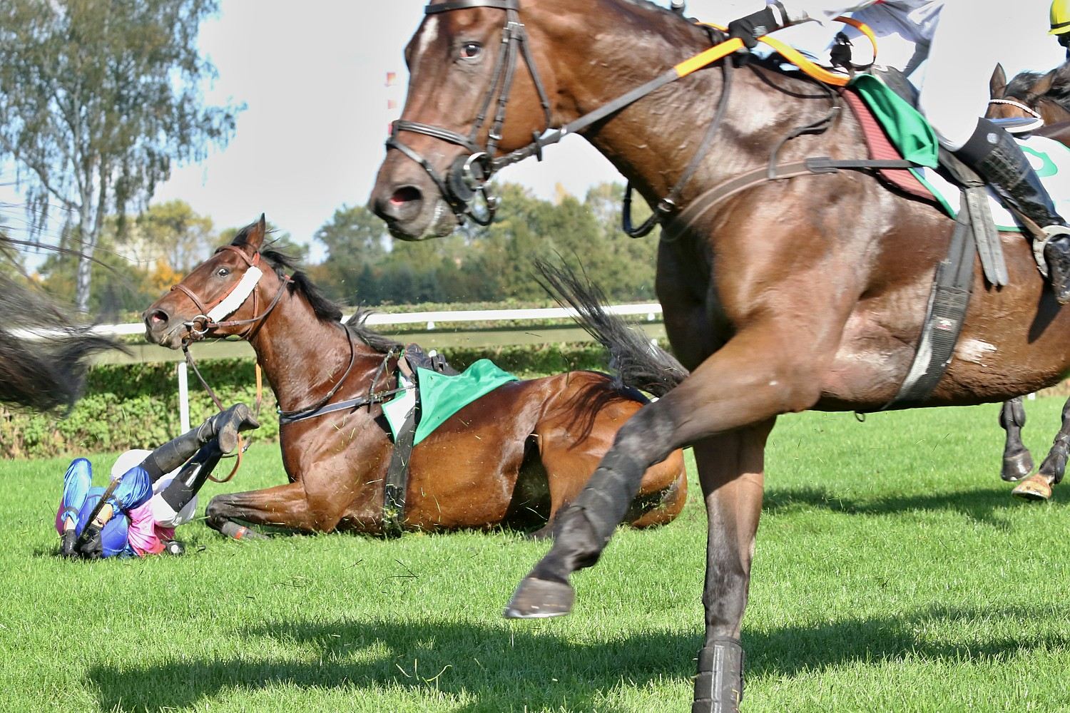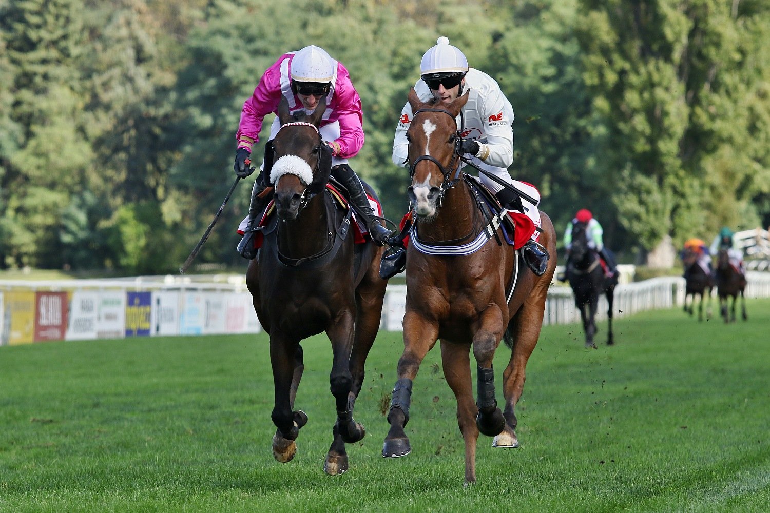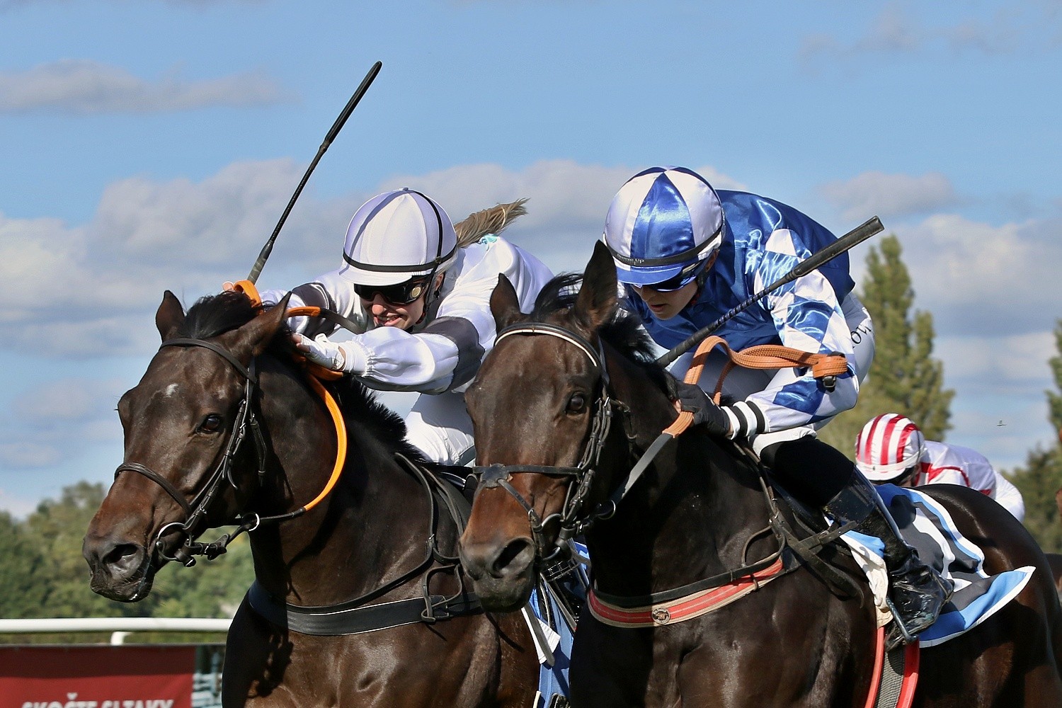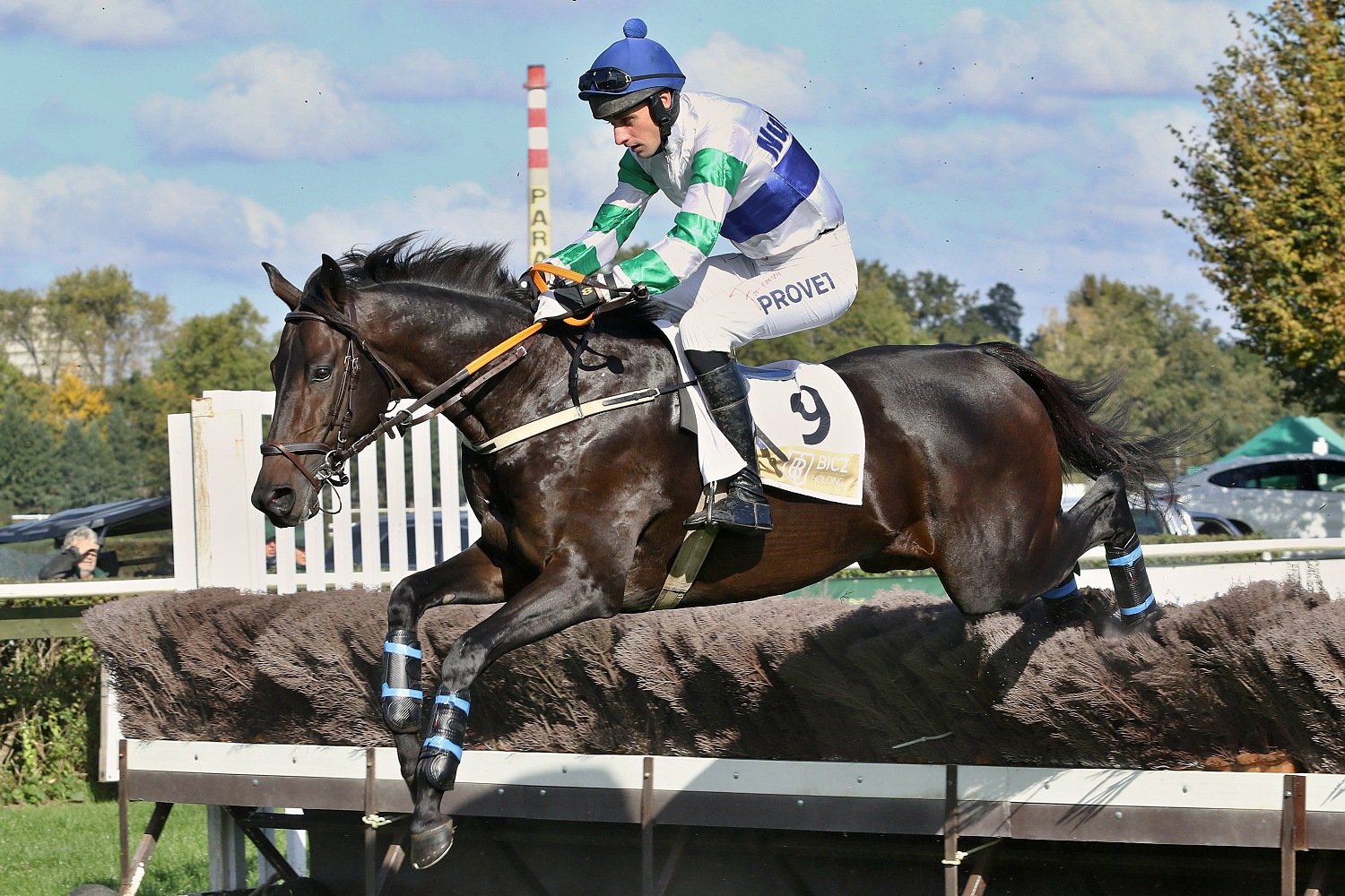 Bohatý předkrm před VP nabídl už sobotní program na pardubickém závodišti. Běhalo se sice “jen” dokola-jedna steeplechase, tři dostihy přes proutěné překážky a čtyři roviny, ovšem většina byla dostihy vysokých kategorií. Ze skoků vyberu Křišťálový pohár města Pardubic (PP, NL, 3400 m.) na jehož startu se sešlo 10 koní. Za svižné tempo vzal hned od začátku třídový RATE (P. Foret), jinak se pole drželo v kompaktní skupině. Od startu ztrácel jen NEL (ž. J. Myška), který byl po jednom kole zadržen a stejný osud potkal hned vzápětí klisnu VIRAGO WESTMINSTER (ž. A. Čmiel), GANIBETa (ž. J. Odložil), GEMILLa (ž. J. Faltejsek) a o skok dál i valacha PALM SPRINGS (ž. J. Bartoš). Do cílové roviny točil první LE GENE BLEU (ž. T. Beaurain) a vedl ještě v její polovině. To už ale mobilizoval síly RATEa jeho jezdec Petr Foret, hnědák stáje Lokotrans chvíli odolával, ale nebylo mu to nic platné. RATE tedy nadělil LE GENE BLEU 1 a ¾ délky, třetí s výrokem daleko doběhla POMELLA (O. Ryzhak), čtvrtý EMOZIONE (ž. O. Velek) a pátý MES AILES (G. Volpe).