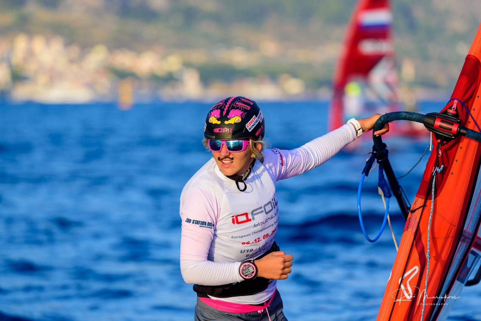 „Bylo to nádherné větrné mistrovství. Přijel jsem na něj s nejlepšími českými juniorskými foilisty, kteří se nakonec všichni dostali do Medal Race,“ chválí trenér Milan Hájek. Medal Race je finálový závod pro 12 nejlepších v každé kategorii, který se jede na závěr týdenního závodění. Samostatné kategorie byly čtyři – vždy dívky a chlapci zvlášť do 17 a do 19 let. Ve finále jsme měli třetí nejpočetnější zastoupení hned za Francií a Polskem. Závodí se na olympijském foilovém prkně, které mají všichni jezdci naprosto stejné a dodává je firma Starboard, plachty jsou také stejné od výrobce Severne, kategorie U19 má velikost 8.0, kategorie U17 menší 7.0.