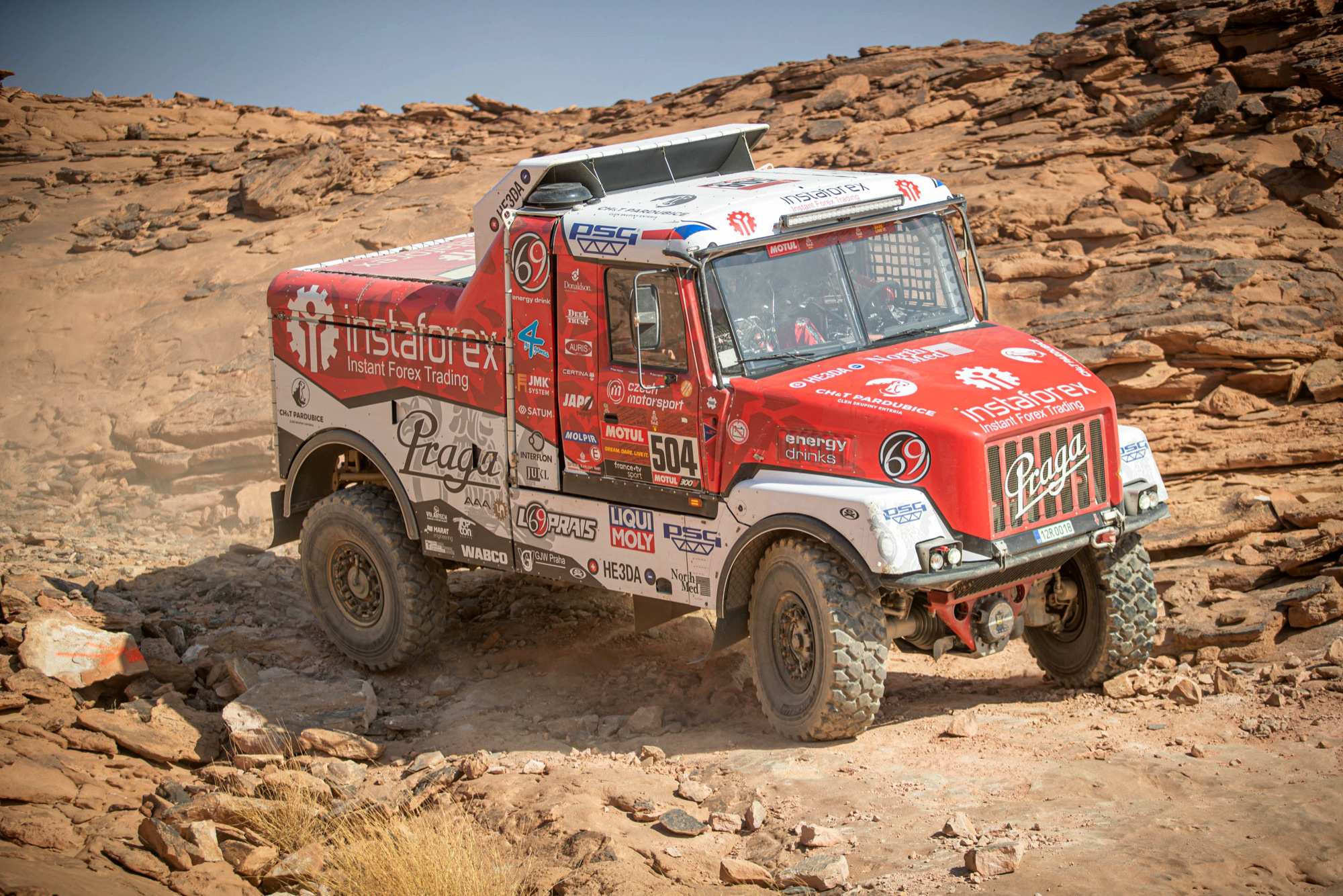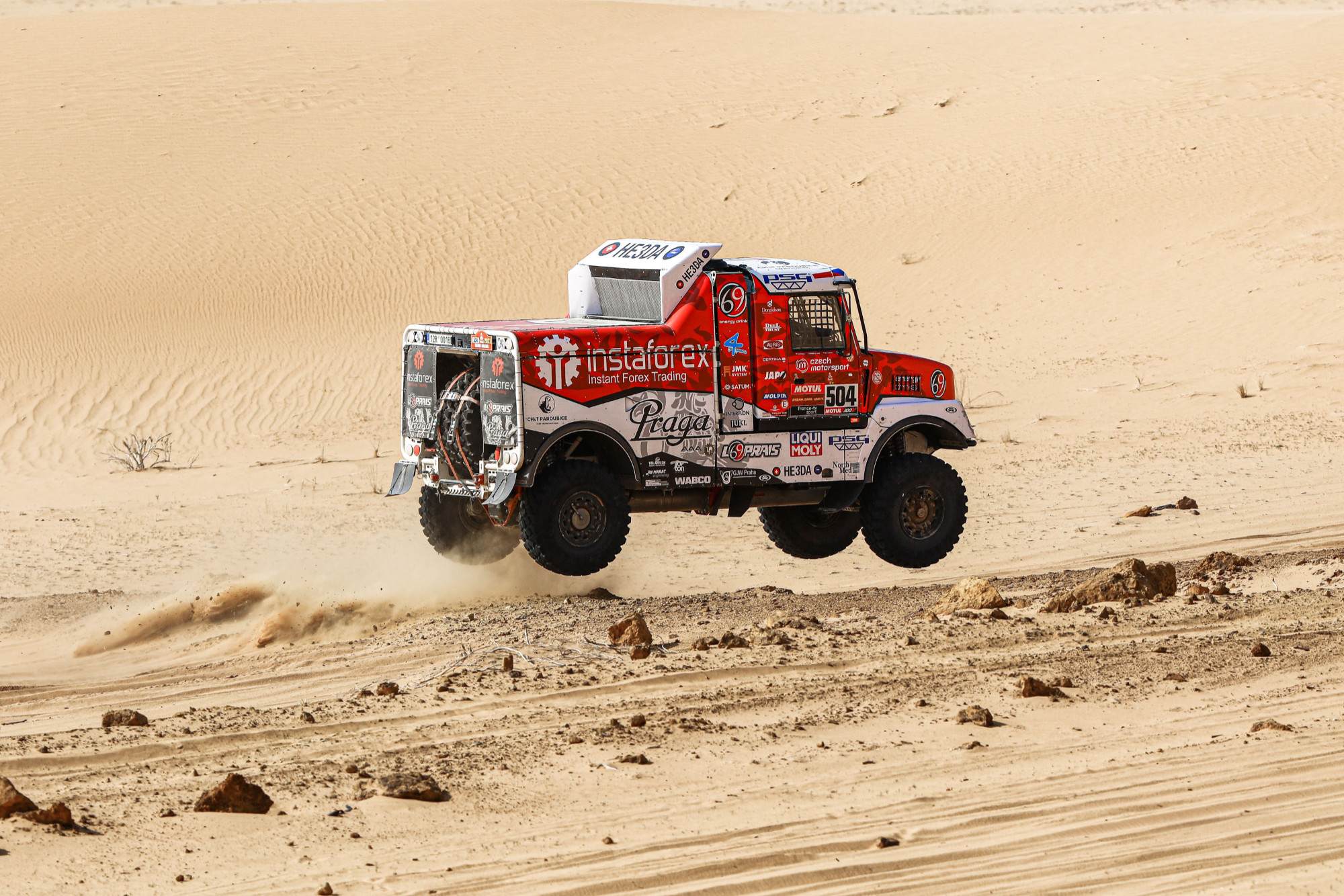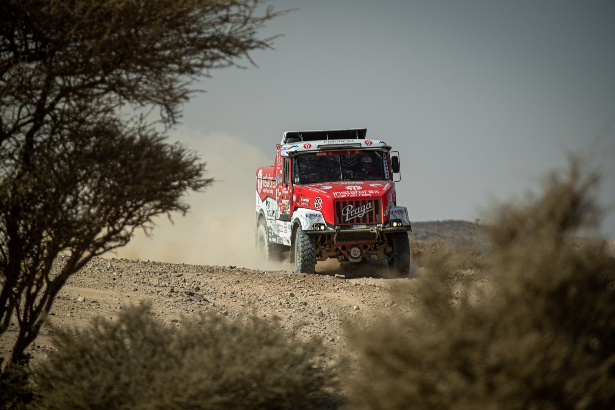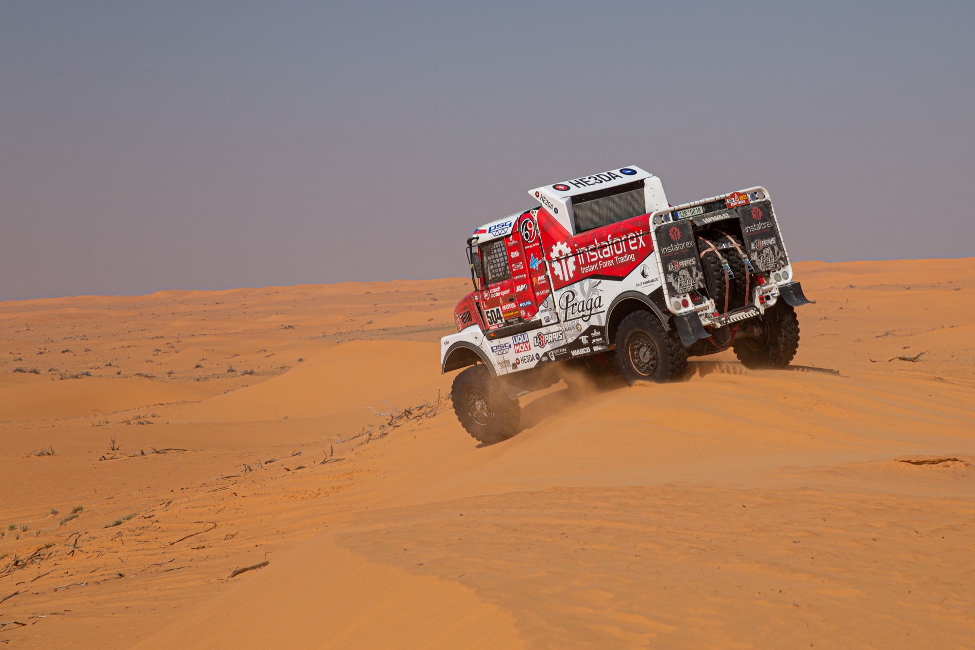 Maratonské etapy, které se jely v neděli a pondělí, uzavřely druhou třetinu Dakaru 2021. Minimálně některým členům Instaforex Loprais Praga Teamu tyto dva dny splynuly v jeden. V bivaku v Sakace, kde posádky musely péči o techniku zvládnout pouze vlastními silami, bylo totiž potřeba vyměnit téměř kompletní přední nápravu Pragy V4S DKR.