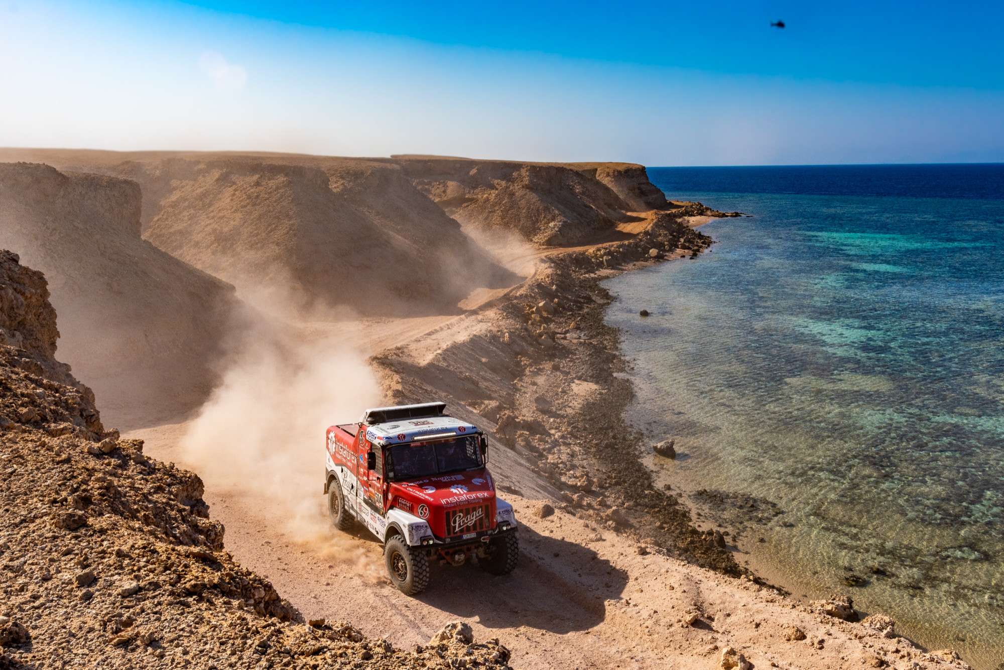 Posádka Aleše Lopraise absolvovala v pondělí 11. ledna osmou etapu, která dovedla dakarskou rally na pobřeží Rudého moře do Naúmu. Cestou bylo potřeba zdolat další náročnou zkoušku o délce 375 kilometrů.