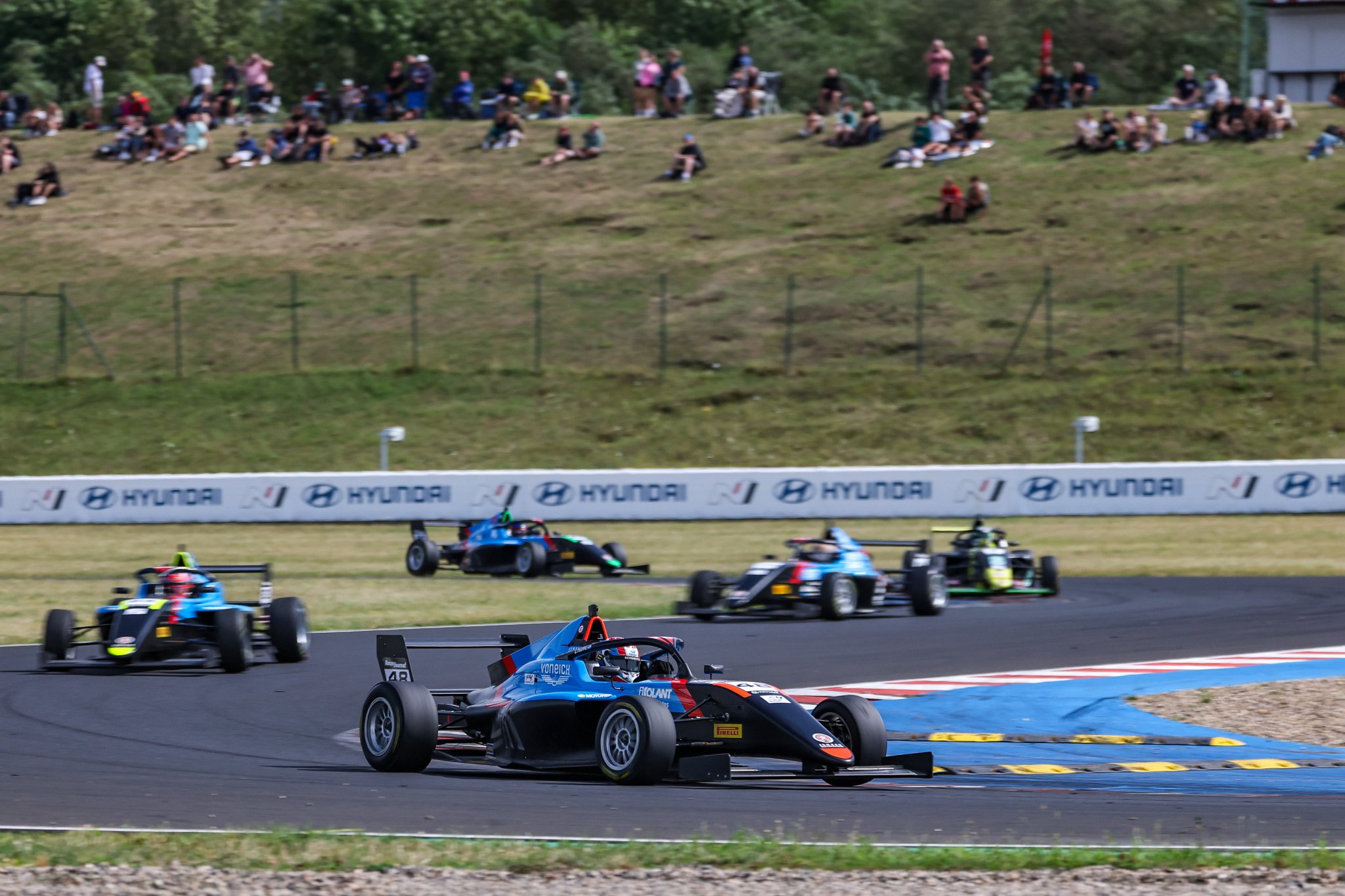 Domácí Max Karhan dojel dvakrát třetí a jednou druhý. Přesto přiznal, že od prvního domácího podniku sezóny 2025 očekával ještě trochu víc. Gino Trappa byl však silným soupeřem, v kvalifikaci si zajistil pole position a ovládl první i druhý závod. Trappu nezastavily ani časté žluté fáze nebo červené vlajky. Svou premiéru na Autodromu Most zvládl na výbornou a nyní má náskok 54 bodů před Karhanem.