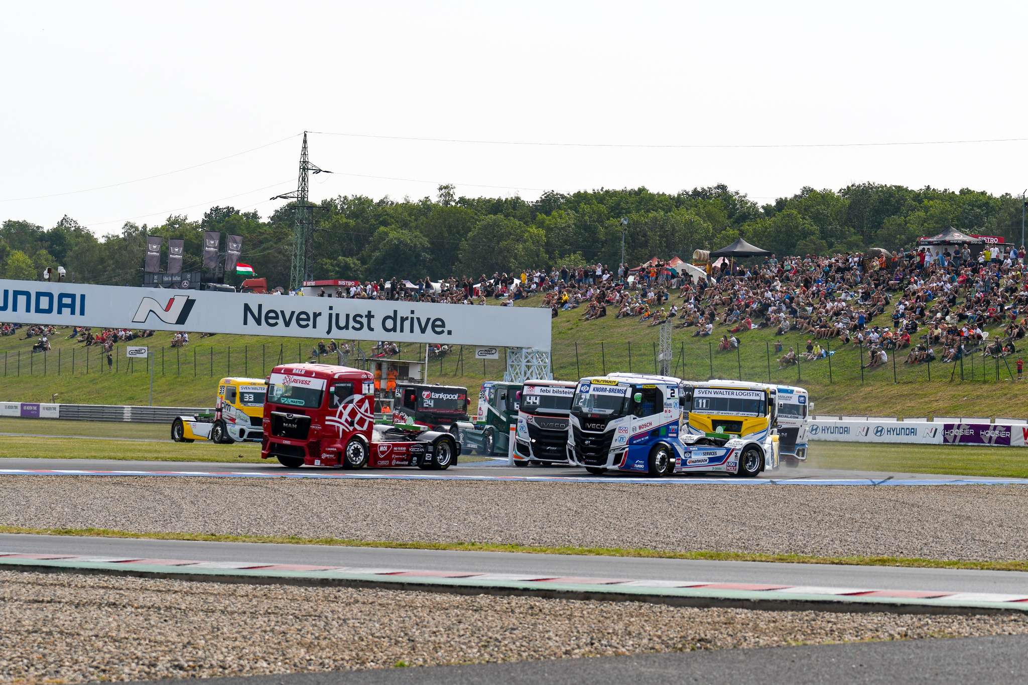 1. Evropský šampionát tahačů nabízí stále chudší startovní pole. 13 vozů na startu je nesrovnatelný počet například s francouzským French Truck Racing Championship, kde se na roštu poskládá třicítka vozů.