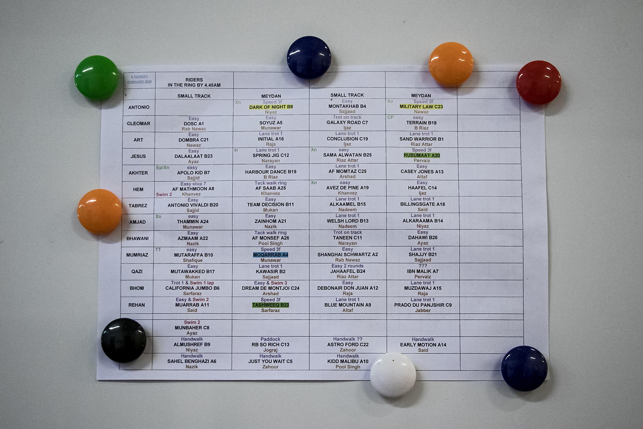 Prohlídka začíná luxusní snídaní v hotelu Meydan, přitom je možné z terasy sledovat koně při ranní práci. Přes zastávku u bazénů pro koně vede cesta do stájí, my jsme navštívili Oasis Stables. Kromě koňských sportovců, jsme mimo jiné viděli přípravnu krmiva, práci kováře, či běžecký pás pro koně. Prohlídka samozřejmě nevynechá ani tribunu, včetně galerie vítězů Dubai World Cupu, několika restaurací, salónků, a především zázemí pro žokeje. Ti mohou využít třeba posilovnu, saunu nebo páru.