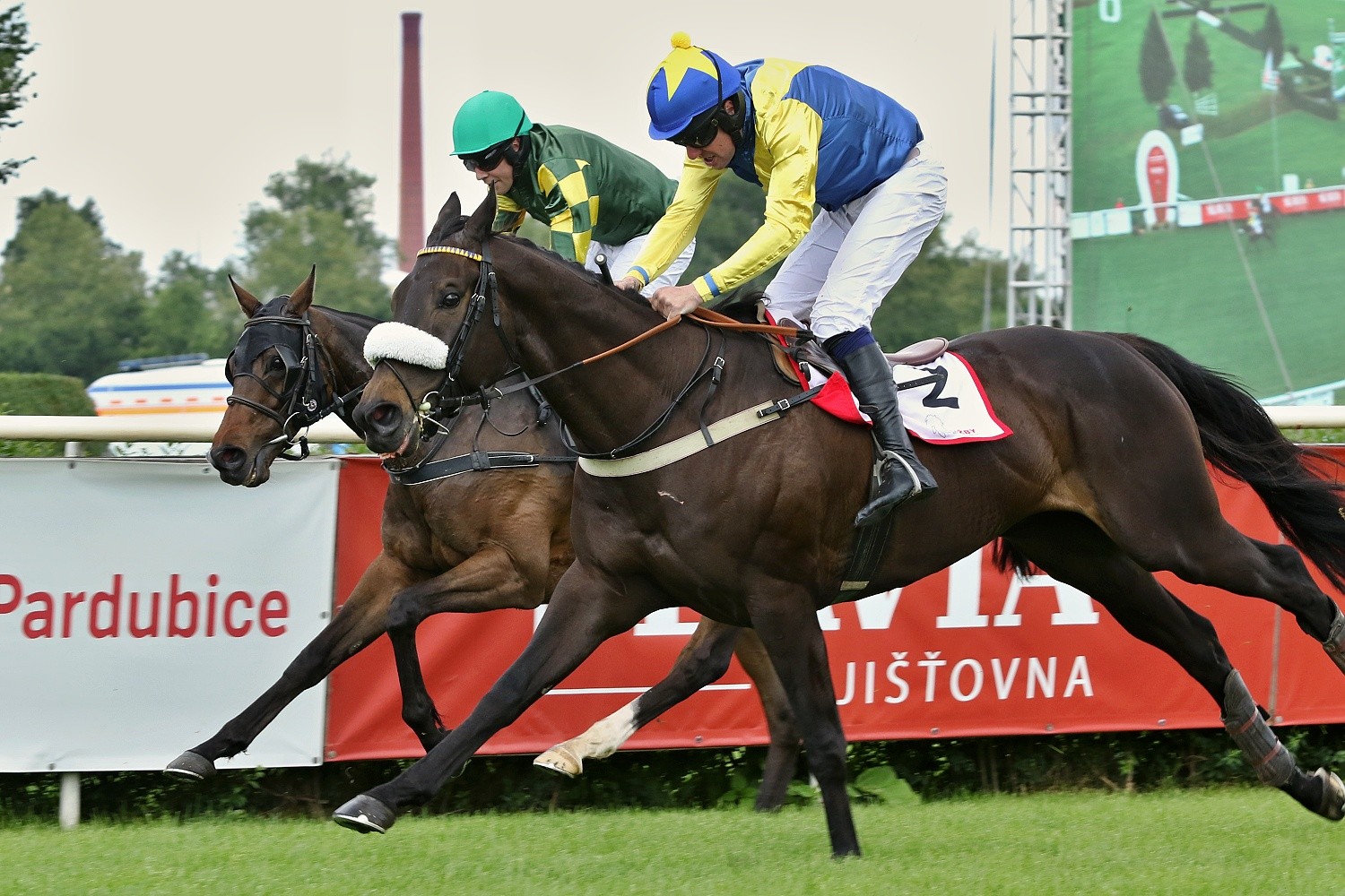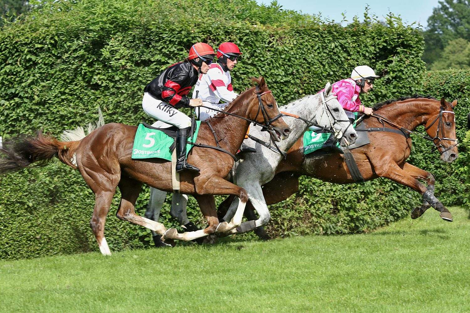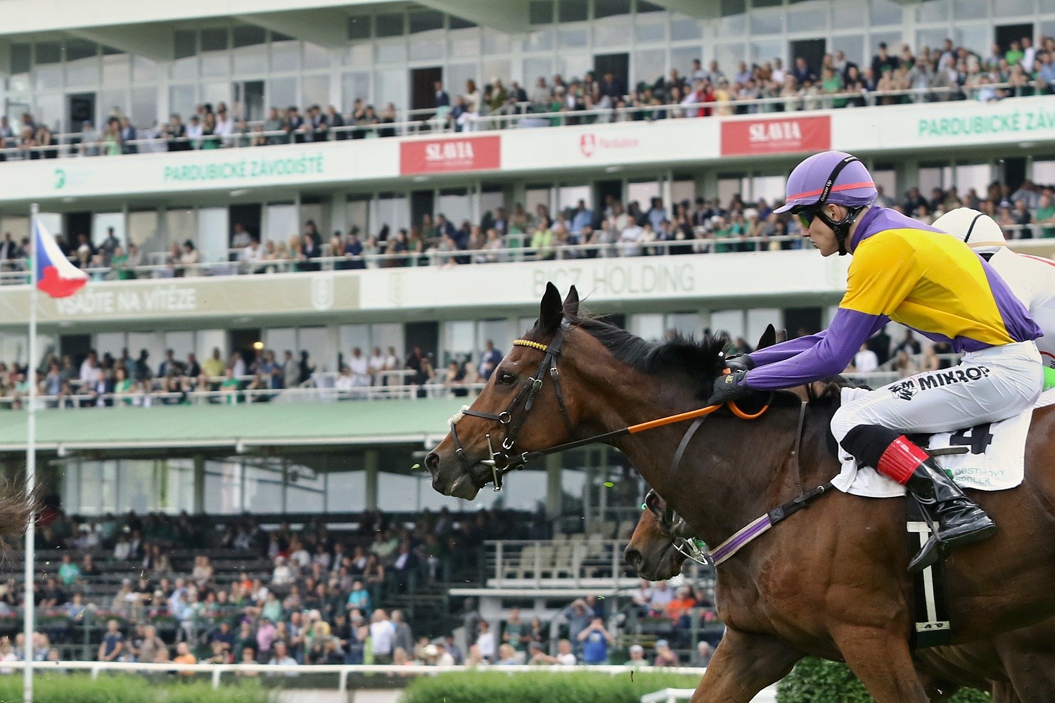 Z dalšího programu vypíchnu ještě krátký kros-Cenu společnosti Tipsport (STCC, II.kat.,3400m.), který také nabídl napínavý a těsný finiš. Ovšem nepředbíhejme. Na startu se sešlo 7 koní a favoritem byl slovenský MR ZURU (ž. P. Složil ml.). Po startu byl svižně na nohou HIBERNIAN (ž. M. Novák), v jehož závěsu se držel favorit. K jedinému pádu došlo na Dropu, kde neustál doskok LINOVSKY (A. Čmiel) a dostih pro něj skončil. Na Hadím příkopu měla co dělat L. Kvapilová po chybě LA CORALa. Při náběhu na travnatý ovál přešel do vedení CLONDAW HOLLOW (ž. J. Kratochvíl), ale poslední skok už skákal hlava-hlava s HIBERNIANem. S ním se znovu chytil MR ZURU, na chvíli šel před něj, ale HIBERNIAN se nevzdal a nakonec MR ZURU chytil na cílové čáře o nos. Po souboji, který zvedl diváky ze sedadel skončil třetí BOULE DE NEIGE (ž. J. Bartoš), čtvrtý PRECIOUS ROCK (ž. M. Liška), pátý CLONDAW HOLLOW a šestý LA CORAL.