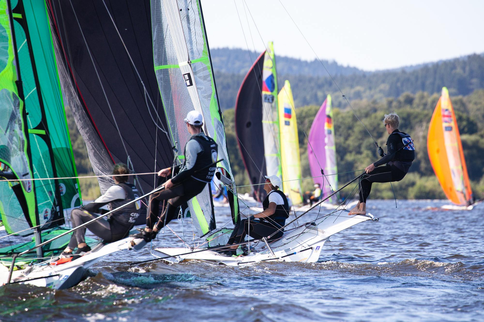 Od čtvrtka 2. do neděle 5. září se odjelo celkem 21 rozjížděk – 11 třída 49erFX a 10 třída 49er. Liší se od sebe pouze velikostí oplachtění – FX je menší. Junioři mohou závodit i s menším oplachtěním, a tak v této kategorii startovaly nejen čistě ženské, ale i smíšené a mužské posádky.