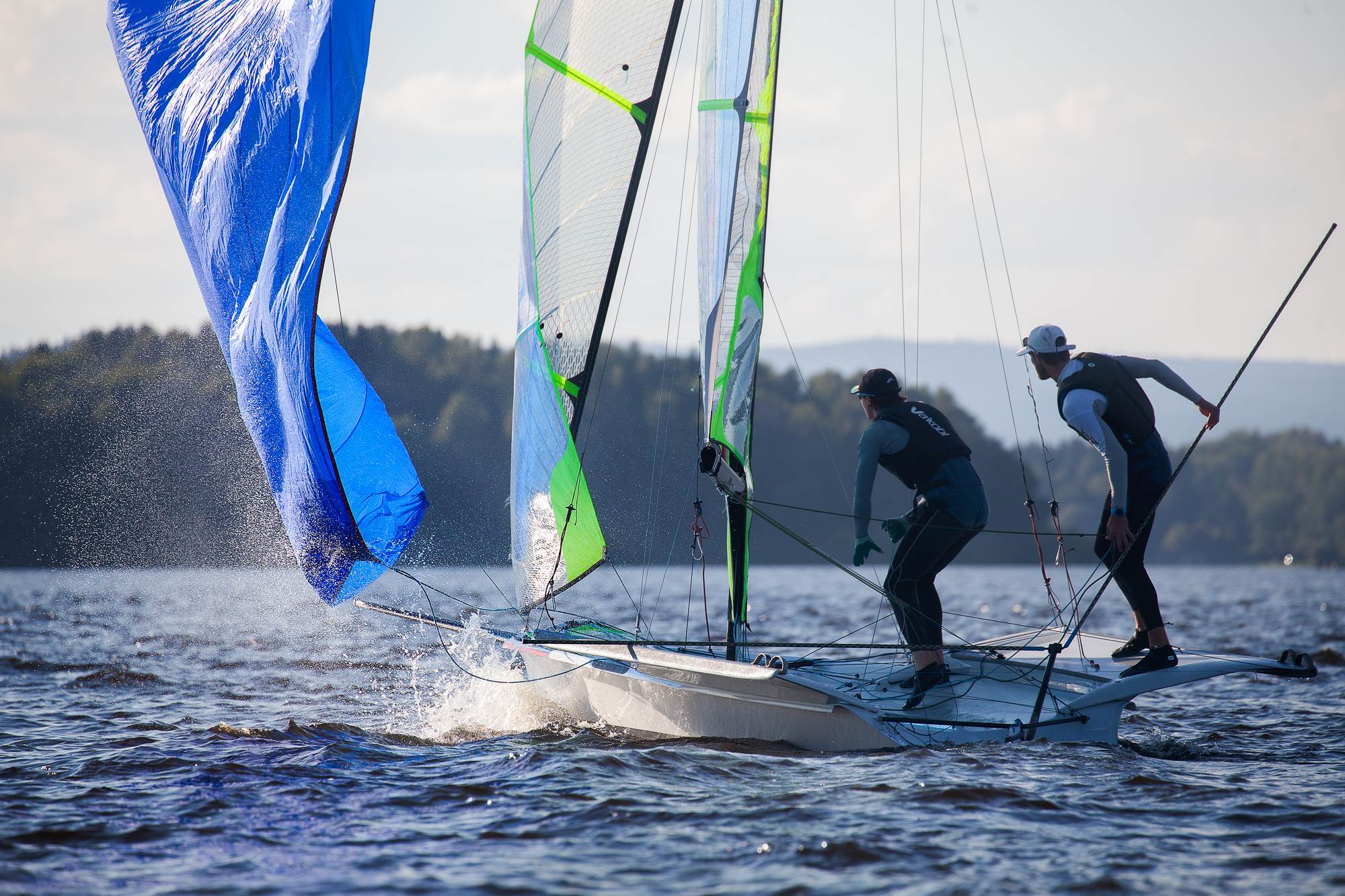 A jak hodnotí Sára Tkadlecová svůj první závod na 49erFX, v němž se přesunula z kosatky na kormidlo? „Obě s Aničkou hodnotíme závod pozitivně. Nejen první a druhé místo z prvního dne, ale postupně jsme se zlepšovaly a sehrávaly, lépe jsme startovaly. Máme toho spolu naježděno zatím strašně málo a je to pro nás velká změna – já z kosatky na kormidlo a Anička z kormidla na kosatku,“ uvedla. „Závod se velmi povedl, podařilo se odjet 11 z 12 naplánovaných rozjížděk. Nejvíc foukalo první den – kolem 9 uzlů (cca 5 m/s), jinak 5–6 uzlů. Pro všechny naše mužské posádky to byl úplně první závod na 49eru, bratři Nevelöšové na 49erFX zajeli pěkné rozjížďky, ale i pro ně stejně jako pro obě posádky 49eru byl závod zejména o sbírání zkušeností a zjištění, na čem mají především pracovat. Mají strašně málo dní na vodě v této třídě (lodě si pořídili teprve letos na jaře, předtím závodili na menších 29erech), a tak je pro ně úspěch, že se dokázali ostatních držet a závodit s nimi. Byl to opravdu skvěle zorganizovaný závod, všem zahraničním účastníkům se na Lipně líbilo, všichni jsme ocenili bohatý doprovodný program včetně školy zaplétání lan s Lanexem, společné večeře i party na Windy Pointu,“ zhodnotila Sára, která až dosud tvořila posádku s kormidelnicí Dominikou Vaďurovou. Ke kvalifikaci na olympiádu v Tokiu jim chyběl jen kousíček.
