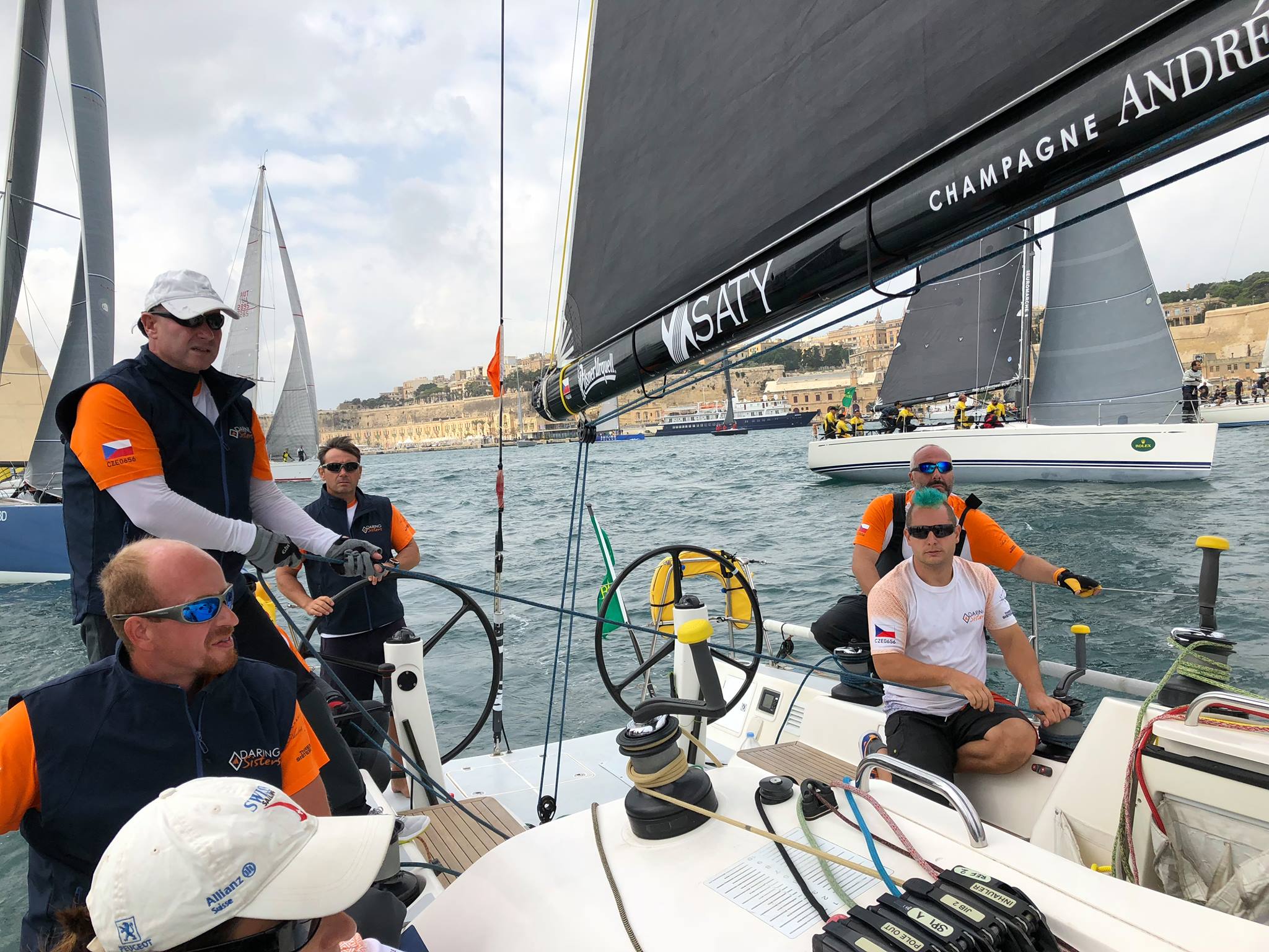 S novou lodí Swan 42 DARING SISTERS se na start postavil velmi úspěšný český tým TŘI SESTRY, jejíž majitelé jsou Tomáš Magor Doležal, kapelník skupiny Tři sestry, a Radim Citron Pařízek, kapelník skupiny Citron. Na Maltě ještě s Firstem 40.7 už dokázal vyhrát svou skupinu a i v celkovém hodnocení několikrát zaznamenat medailové umístění. Závodu se zúčastnil poprvé již v roce 2008, letos medaile bohužel těsně unikla. Tým skončil na 19. místě v ORC celkově a ve skupině ORC 3 čtvrtý. Skipperem byl opět Milan Hájek, dále byli v týmu tradiční opory jako Adam Skin Plhoň, Petr Stoklásek, Jiří Michalčín nebo Kateřina Staňková. Na předních místech se tým držel celou první polovinu závodu, asi po 30 mílích po otočení Favignany se roztrhla malá kosatka (číslo 4). „Swan 42 je strašně přeplachtěná loď a my s ní zatím máme málo zkušeností. V tak silném větru jsme na ní jeli poprvé. Nejprve jsme zaznamenali rychlostní rekord lodě 22,6 uzlu. Když jsme roztrhali čtyřku kosatku, neměli jsme moc možností, čím ji nahradit. K hlavní plachtě s druhým refem jsme přidali bouřkovou kosatku a pak i staysail, ten ale také nevydržel do konce dlouhého zaďáku. Pluli jsme pomaleji než soupeři, ale neměli jsme jinou možnost,“ říká Tomáš Magor Doležal. „Nejsme zklamaní, převládá dobrá nálada, že jsme závod dokončili a plavbu si užili.“