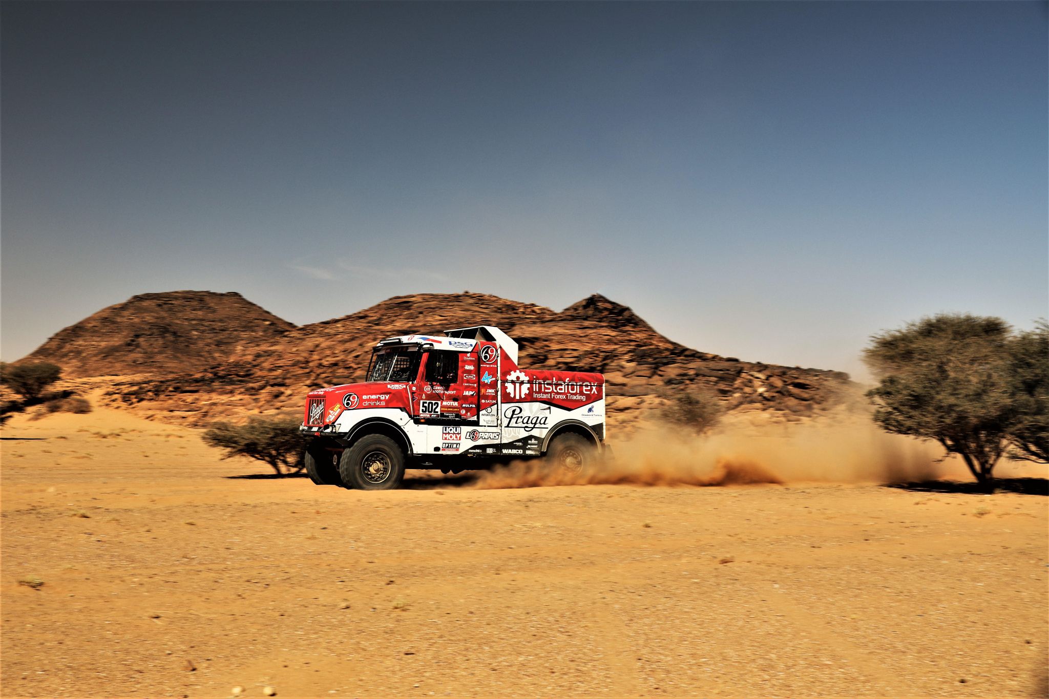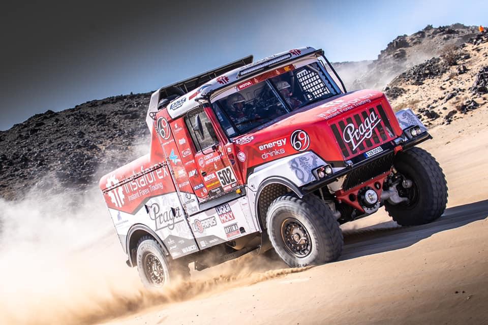 Očekávání se naplňují. První saúdskoarabský ročník Rally Dakar je doopravdy nesmírně náročný. Posádce Instaforex Loprais Teamu se však daří. Ve čtvrté etapě úspěšně zdolala terén, jaký na maratonských soutěžích nikdo nepamatuje, a v průběžné klasifikaci kategorie kamionů postoupila už na pátou pozici.