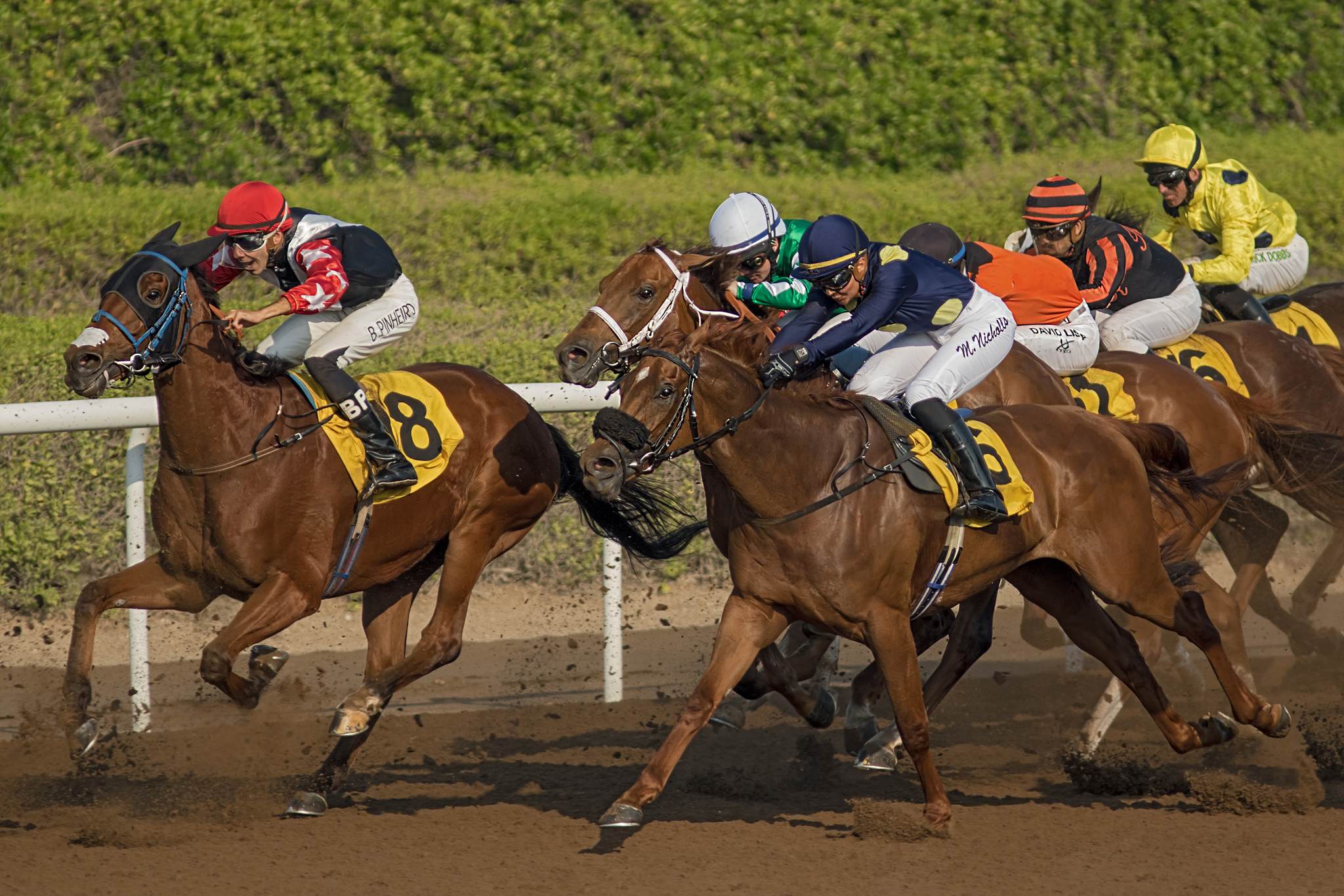 Tím hlavním je ale samozřejmě zápolení na dráze. Na pořadu dne bylo 7 dostihů, v každém se na start postavilo 12 až 16 koní. Nejvyšší dotaci, 115 000 dirhamů, měl 4. dostih – Derrinstown Stud na 1950 m. V sedlech se představili i žokejové známí z Evropského poháru žokejů v Praze, Fabrice Veron, Adrie de Vrie, Tadhg O´Shea, Antonio Fresu nebo Szcepan Mazur. Z hlediska českého fanouška však ve startovní listině nejvíc zářilo jméno Davida Lišky jezdícího pro trenéra Rasheda Boureslyho. David Liška startoval ve třech dostizích. Nejlepší výsledek zaznamenal hned při svém prvním startu, v handicapu Ascana na 1 600 m, v sedle pětiletého Celtic Prince. S tímto koněm v předchozích startech dosáhl postupně třetího a druhého místa a 5. prosince 2019 na Meydanu dokonce zvítězil. K vítězství Davidu Liškovi s Celtic Princem moc nechybělo ani nyní. Hned od startu se drželi v popředí celého pole, v první zatáčce se dostali do vedení a dlouho to vypadalo, že první místo udrží až do cíle. V posledních 50 metrech se však před ně drtivým závěrem dostali Native Appeal v sedle s Adamem McLeanem. V hlavním dostihu sedlal David Liška sedmiletého Aridity a ze 16 startujících doběhli třináctí. Chuť si Liška spravil v posledním dostihu na 1 000 m, když čtyřletého Shangai City přivedl do cíle na čtvrtém místě.