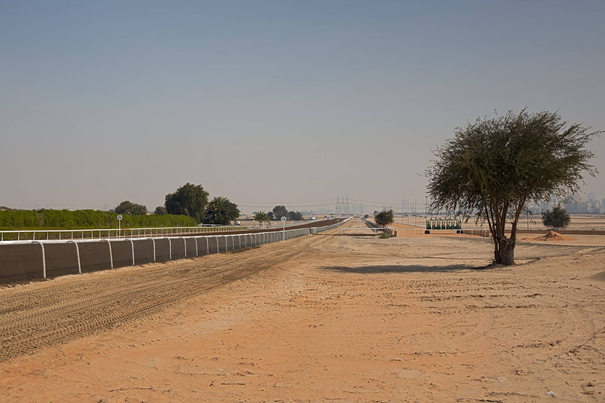 Pravotočivá závodní dráha je dlouhá 2 200 m a má tvar podkovy. K dispozici je také přímá trať o délce 1 400 m, která se na podkovu napojuje v ukončení oblouku na mezníku 900 m. V posledních 400 metrech cílová rovinka poměrně strmě stoupá. Povrch trati tvoří směs speciálního pouštního písku a ropy. Tato trať je považována za jednu z nejlepších all-weather tratí na světě.