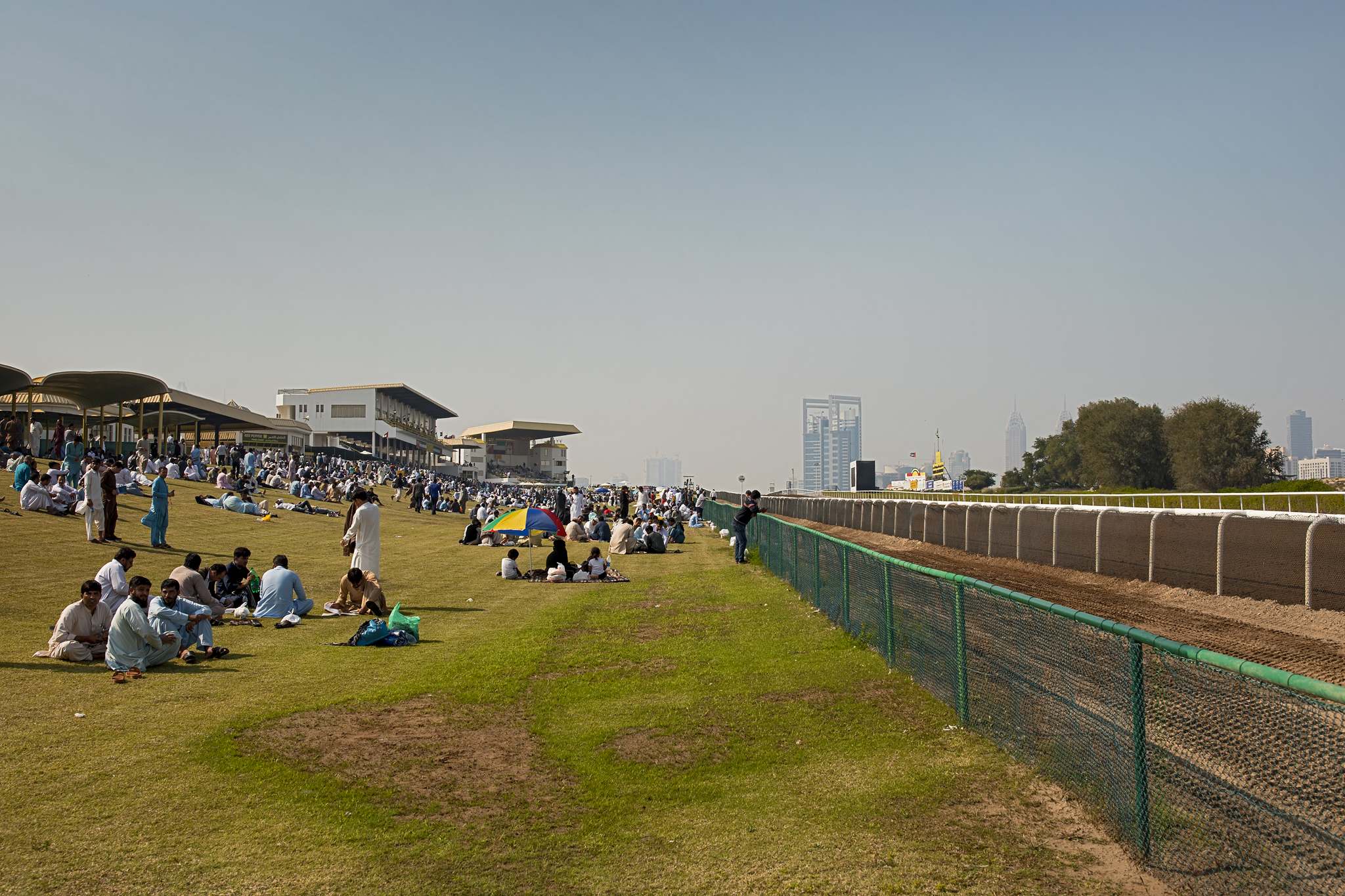 Závodiště je zvenku velmi nenápadné, ani místní, kteří kolem denně jezdí, často o závodišti vůbec nevědí. Zážitkem je už cesta ke vstupní bráně, mimochodem vstup je zdarma. Pozornost neznalých místních poměrů vzbuzují především ženy mířící na závodiště. Tedy ne ženy jako takové, ale tašky plné jídla, kterými jsou ženy ověšené. Po příchodu na závodiště ženy rozprostřou na trávníku koberečky a deky, z tašek vyndají hrnce s uvařeným jídlem a piknik může začít. Kolem pobíhají děti. Holčičky se chtějí seznámit a potřást si rukou s bledou Evropankou ověšenou fotoaparáty, kluci hrají fotbal se vším, do čeho se dá kopnout. A muži se sdružují do skupinek, kde bouřlivě diskutují a vyplňují tikety tipovací soutěže Pick 7.