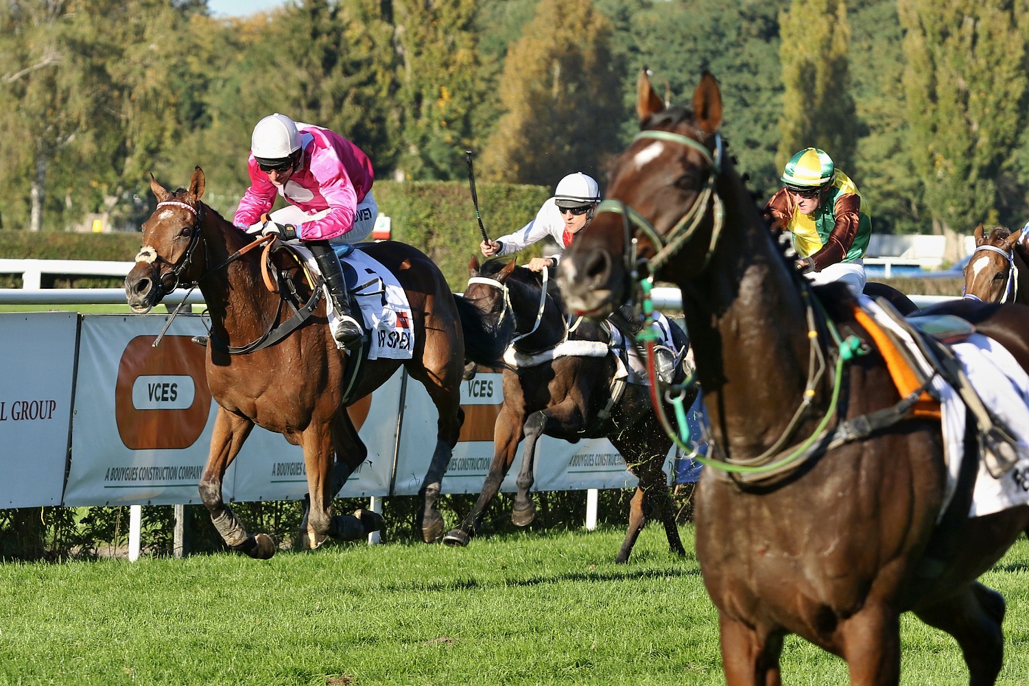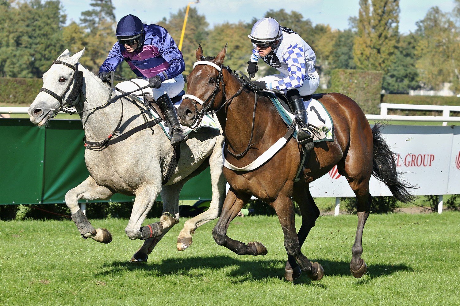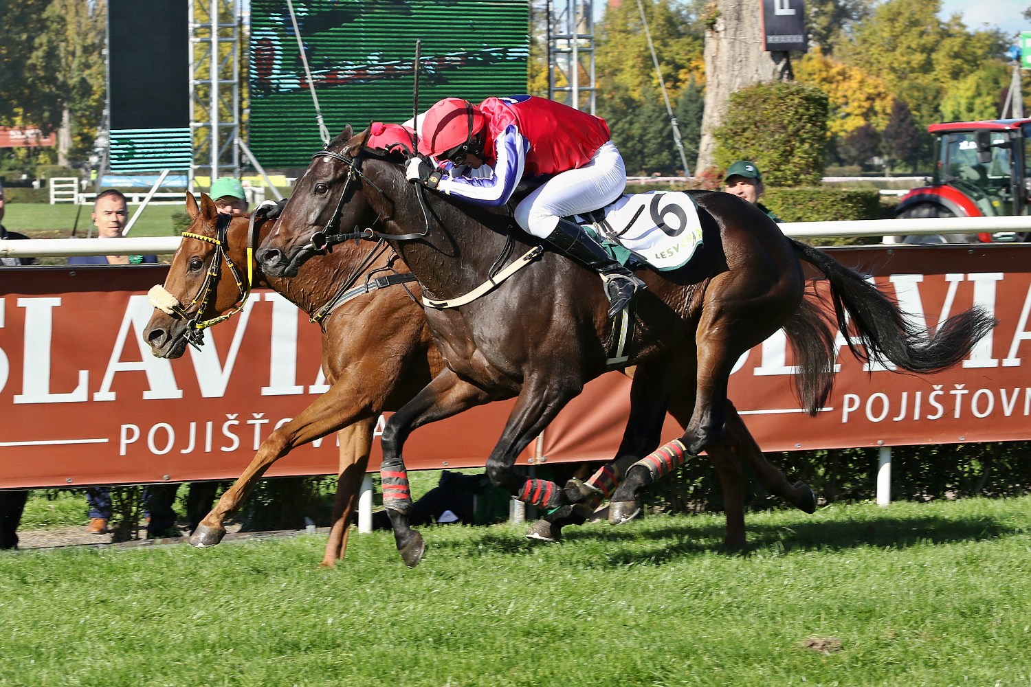 Ale teď už k samotným sportovním kláním, které, jak už to vždy bývá, nabízely mnoho příběhů. O jeden z nich se, alespoň z mého pohledu, postaral hnědák ANGOSTURA v sedle se svým stálým žokejem Pavlem Kašným v Ceně Vltavy (STCC, NL, 4500m.). Jako největší outsider (65:1) v poli 7 koní udával hned po startu svižné tempo a perfektně skákal. Po cestě do cíle mu ubyli 2 soupeři - DUNDEE (ž.P.Složil ml.) byl zadržen za Francouzským skokem a WISE RULERa (ž.J.Myška) potkal stejný osud před poslední překážkou. ANGOSTURA se statečně držel na špici až do cílové roviny, kde jej předstihli favorité - vítězný GATSBY (ž.J.Odložil) a AENEAS (ž.J.Bartoš). Třetí místo v takovém dostihu a v takovém stylu je fantastický úspěch a pro všechny diváky to byla i potěcha oka. Čtvrtý skončil LAVERNO (ž.M.Novák) a pátý KUBALI (ž.L.Matuský).