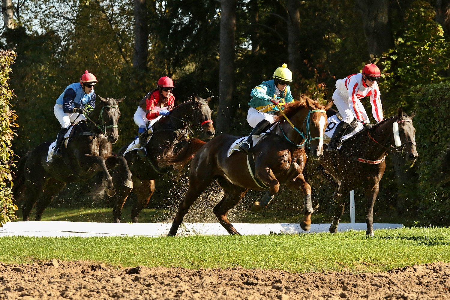 Nyní už pojďme po stopách dostihu, na který se upíná pozornost téměř celého národa. Letos 132. Velké pardubické (STCC, L, 6900m.). Na startovní listině bylo 15 koní a vyhrát mohl prakticky kdokoli. Sázkaři věřili nejvíce loňskému vítězi TALENTovi (ž.P.Složil ml.) a velké neznámé - valachovi BRUNCH ROYAL (ž.J.Bartoš) trenéra Josefa Váni ml. Ten v Pardubicích nikdy nestartoval a neznalost místních specifik byla otazníkem. V 16. hodin se koně sešli na tradičním místě, před překážkou č. 1, a po nepříliš povedeném startu je startér Petr Hochman vyslal na trať. Na čele se usadil STRETTON (ž.T.Garner), následován 3. favoritem PLAYERem (ž.M.Novák) a zbytkem pole. Tempo na Taxis bylo pomalejší, než je obvyklé a vyústilo v mnoho skokanských chyb. Pádem však tyto chyby skončily jen u IMPHALa (ž.J.Myška) a STARa (ž.J.Brečka). Na problematickém Popkovickém skoku skončila cesta dostihem pro KAISERWALZERa (am.P.Mullins) a za lesem, na Francouzském skoku vypadl ze sedla DUSIGROSZe ž.M.Stromský. Velké problémy měli někteří účastníci na 10.překážce - Anglickém skoku u doubku, bočícího volného koně museli doslova přeskočit. K dalšímu pádu došlo na Dropu a potkal BRUNCH ROYALa. Na Hadím příkopu se s dostihovou kariérou rozloučil pádem vítěz VP 2017 NO TIME TO LOSE (ž.O.Velek). Na Suchém příkopu za lesem udělal hrubou chybu STRETTON a propadl se na konec pole. Při výběhu na travnatý ovál zabral k trháku TALENT, těsně následován PLAYERem a MR.SPEXem (ž.L.Matuský). Dva skoky před cílem byl zadržen CHICNAME DE COTTE (ž.L.Solignac) a zbylých 8 koní se již dostalo do cíle. V polovině cílové roviny přešel do vedení MR.SPEX a uhájil vítězství jistě o 1 a 3/4 délky před TALENTem. Třetí skončil SACAMIRO (J.Kocman), čtvrtýPLAYER, pátý ARGANO (ž.M.Liška), šestý LOMBARGINI (ž.J.Odložil), sedmý DULCAR DE SIVOLA (J.Borč) a na stupně vítězů se nedostal jen poslední STRETTON.