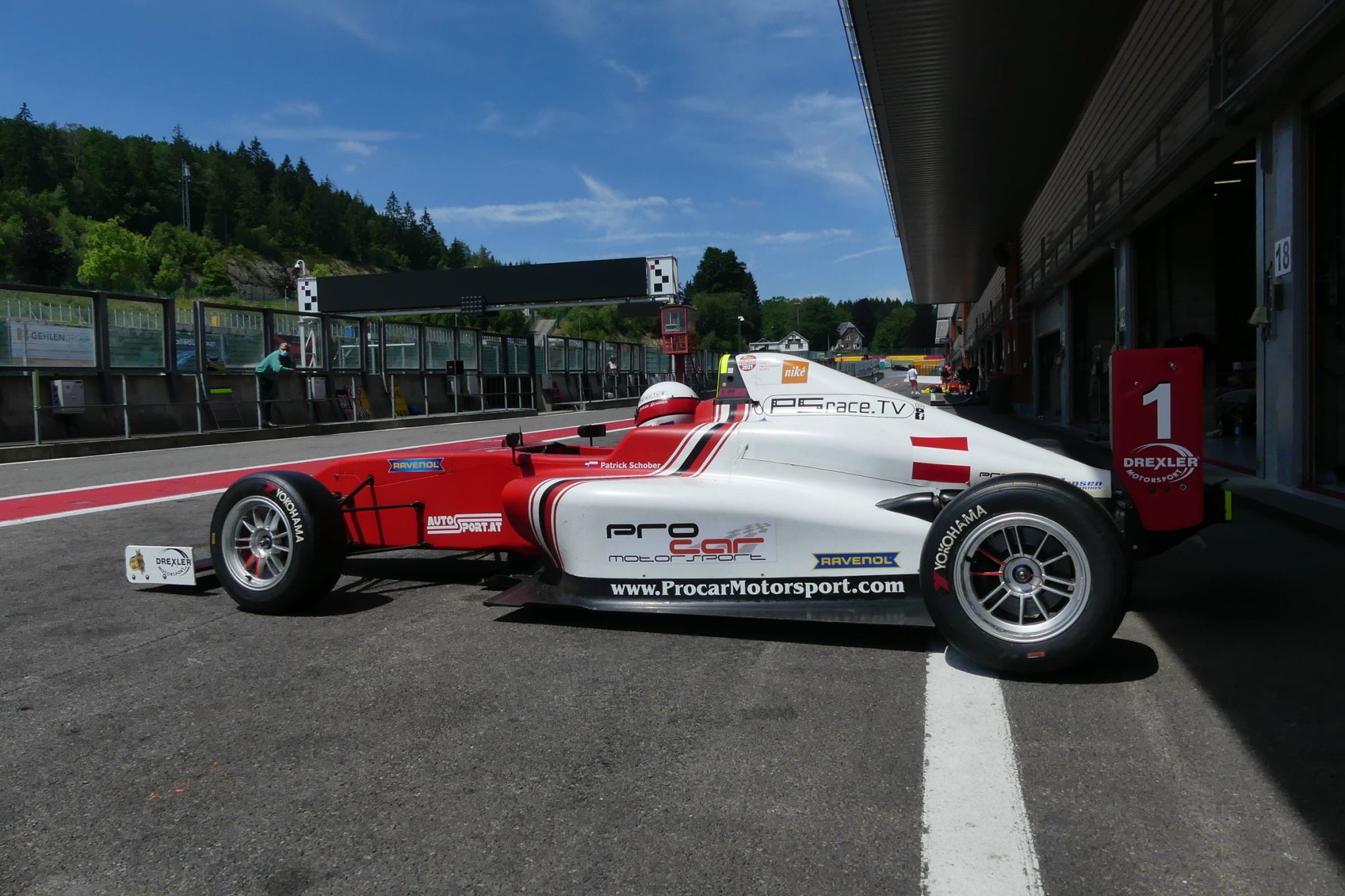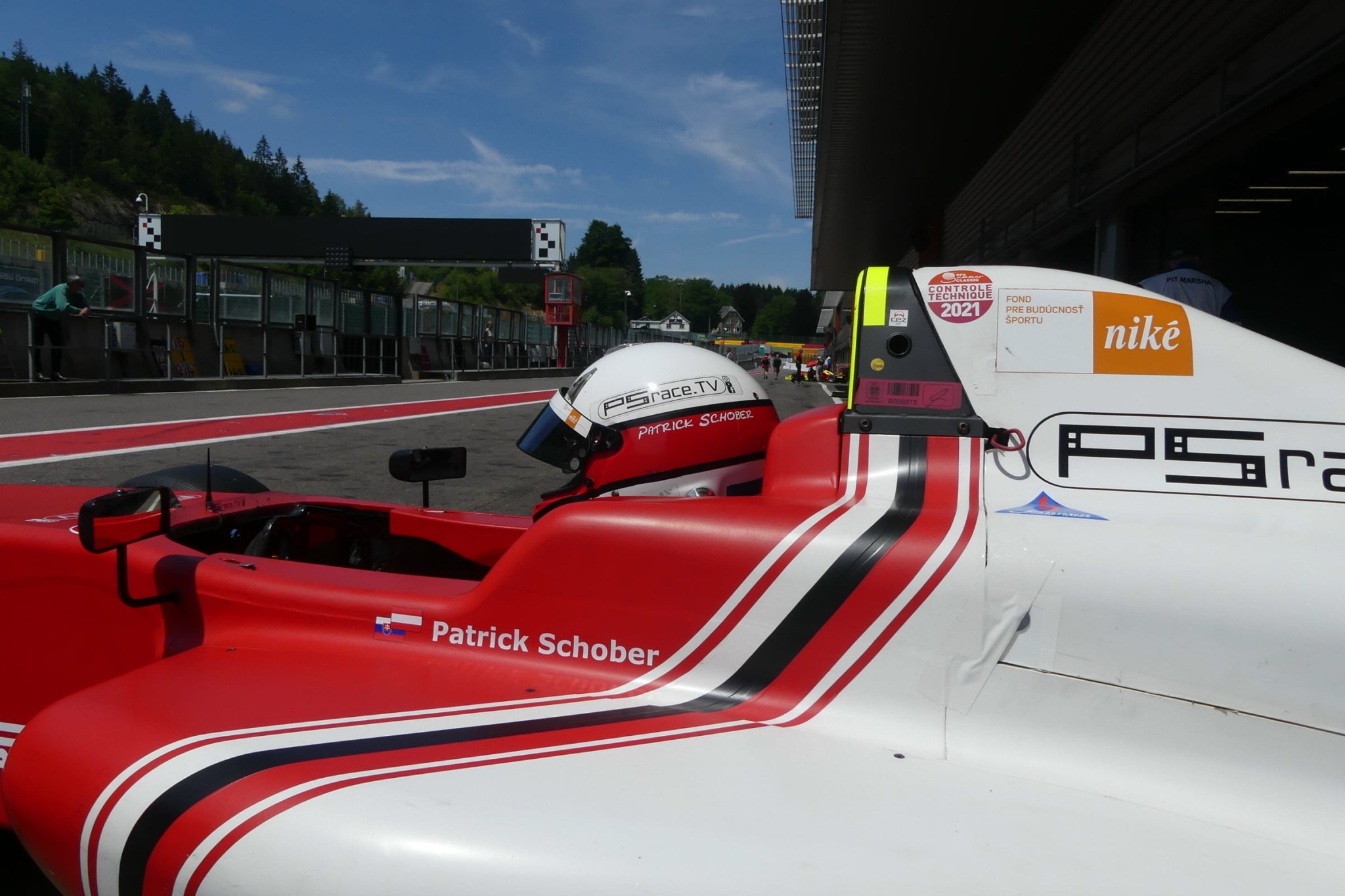 Piloti se podle výsledků v sobotu seřadili na start druhého závodu v neděli. Schober startoval v neděli z 13. pozice vedle svého konkurenta z Maďarska, který se ocitl na P14 z celkem 29 jezdců Formule 3 a Renaultu. Bohužel startovní 13. pozice nepřinesla Patrikovi štěstí. Během letmého startu v první zatáčce la Source další z jezdců narazil zezadu do Patrickovy F4 a poškodil zavěšení zadního kola a zadní křídlo. Bohužel již nebylo možné pokračovat.