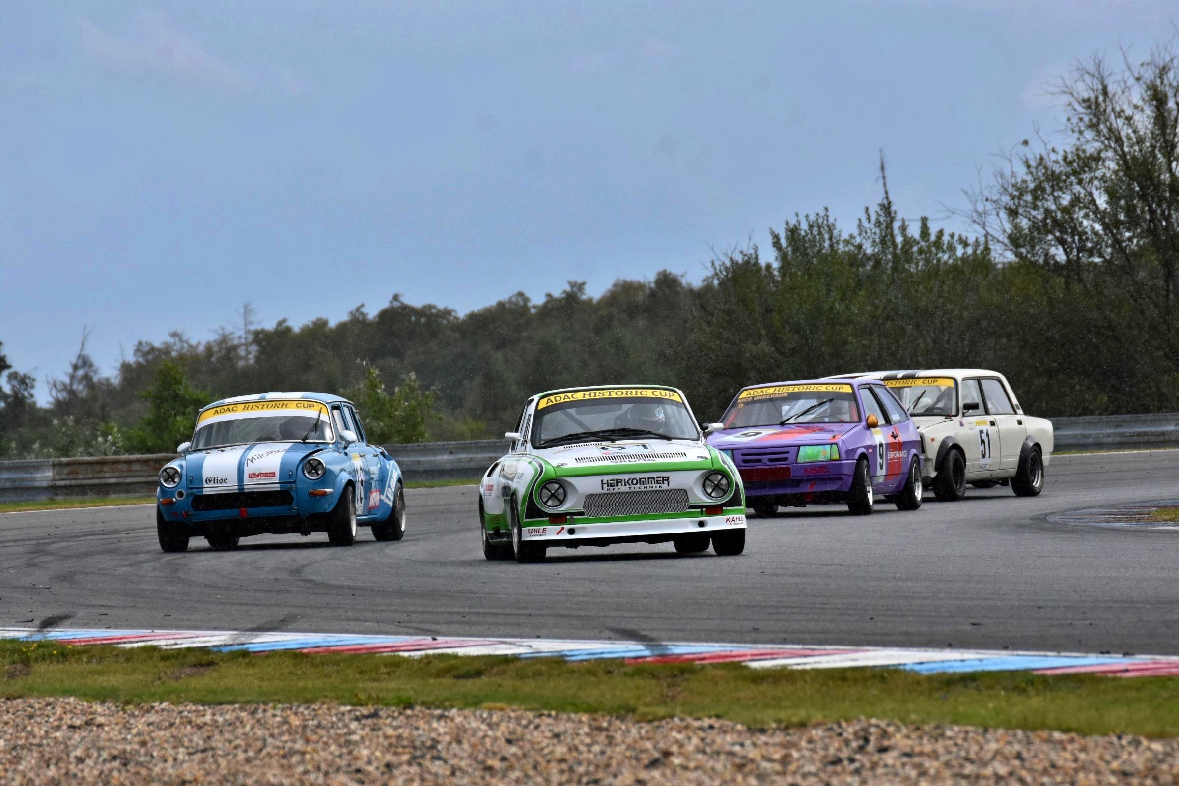 13. V sobotu, po nočním lijáku, měli někteří jezdci problémy udržet svůj vůz na trati jako např. Daniel Holzner z Rakouska.