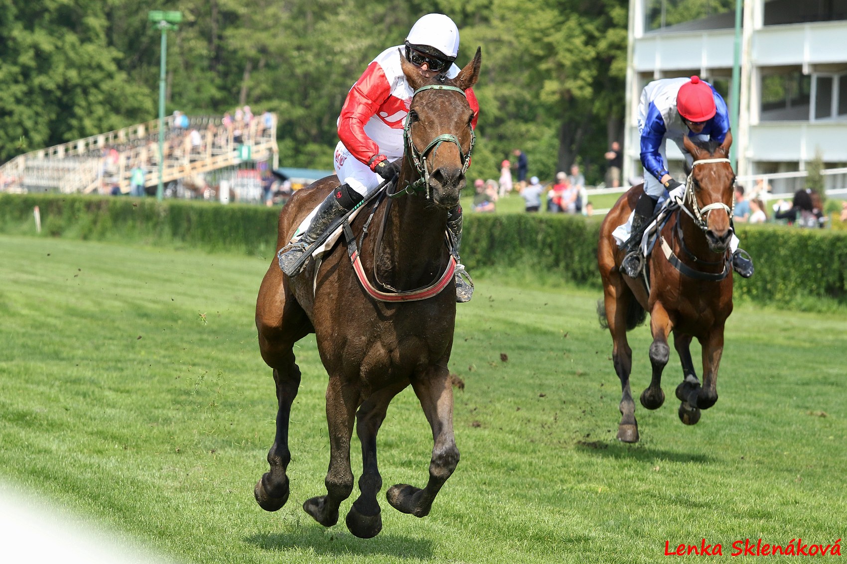 Z rámcového programu bych tentokrát vyzdvihla dění okolo 6. dostihu, kde se z vítězství radoval String s Petrem Tůmou, který se letos vrátil do sedla po roční pauze způsobené zlomeninou krčního obratle z dostihu v Bratislavě. Ač se to zdálo nepravděpodobné, nakonec se Petru Tůmovi podařilo vrátit se i po takovém zranění zpět do dostihů, a i díky Stringovi mu chybí poslední, padesáté, vítězství k titulu žokeje. Hodně štěstí !