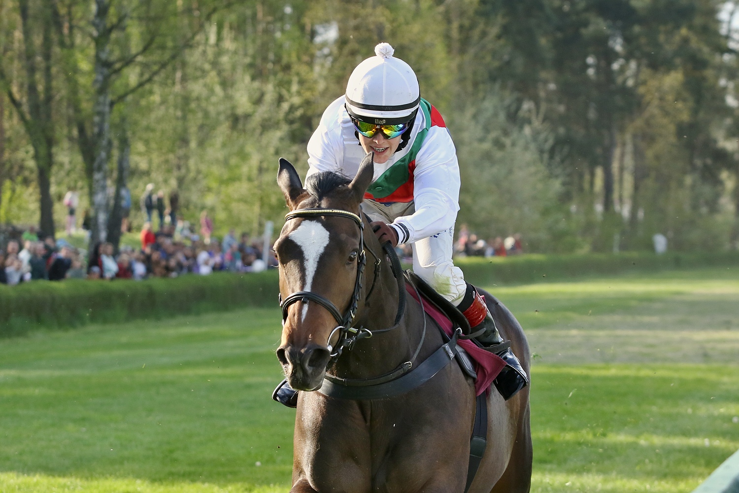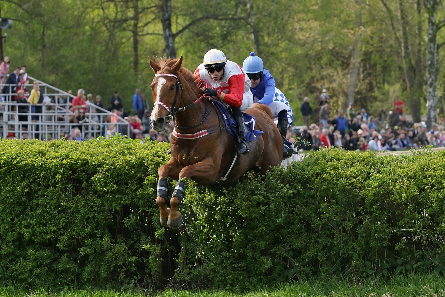 1.května otevřelo své brány i závodiště v Lysé nad Labem. Před skvělou diváckou kulisou se odběhlo 8 dostihů a další 4 dostihy poníků. Vrcholem odpoledne byla Prvomájová steeplechase (I.kat.,4200m.), na jejímž startu spočinulo 7 koní. Favoritem byl hnědák AENEAS, jehož žokej Jan Kratochvíl by v případě vítězství vyhrál tento dostih podeváté. Překazit mu to mohli především loňský vítěz Velké slušovické SEXY LORD, podpořen v sedle žokejem Jaroslavem Myškou, či loni pátý ve VP ARGANO (ž.M.Liška). Po startu se na čele usadil slovenský host ENJEU D´ARTHEL (ž.M.Cagáň). Na 6.překážce kurzu špatně doskočil KIFAAYA a jeho žokej Jan Faltejsek se poroučel ze sedla. Další problém ukončený pádem potkal ž. Marcela Nováka, kterému se při prudším točení uvolnilo sedlo, zvládl ještě překonat jeden skok, a následně se s ním i se svým svěřencem DUMON ROCLAYem rozloučil. Na protilehlé rovině nasadil k trháku AENEAS a už před sebe nikoho nepustil. Druhý doběhl ENJEU D´ARTHEL, třetí přišel výborným finišem ARGANO, kterého navíc v náběhu do cílové roviny vyvážel volný kůň, čtvrtá skončila vítězka tohoto dostihu z roku 2021 ANTALGIQUE (ž.J.Odložil) a pátý dokončil SEXY LORD.