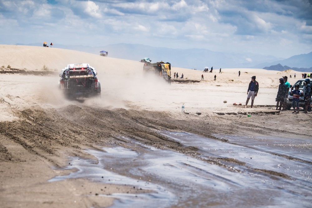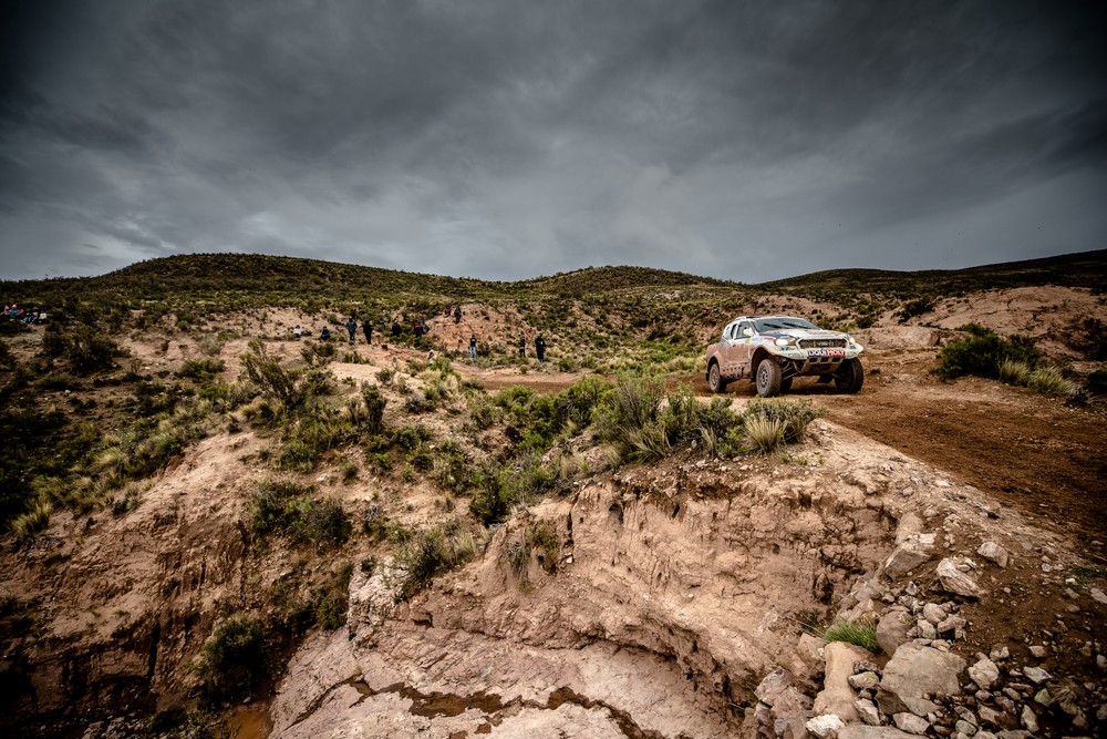 Na Dakaru každý den představuje závod sám o sobě. Bez ohledu na to, jak blízko je cíl, může se kdykoliv na cestě objevit nějaká překážka. Jako například kámen skrytý v písku, který 12. závodní den potrápil Tomáše s Davidem. Přesto, Tomáš Ouředníček a David Křípal dojeli do cíle 12. etapy Rallye Dakar mezi městy Chilecito a San Juan na 32. místě a v celkové klasifikaci si opět trochu polepšili a aktuálně jim náleží 33. příčka.