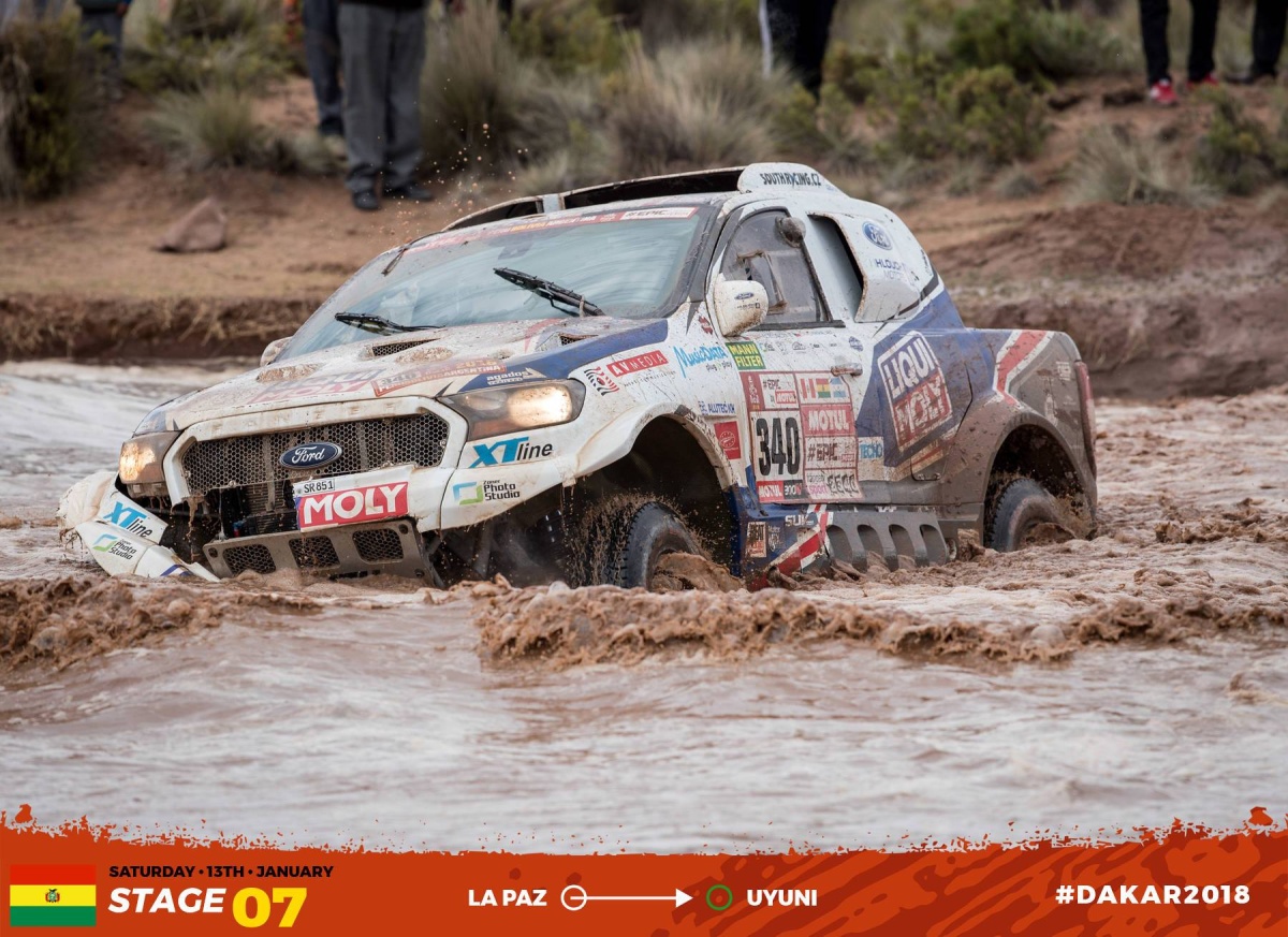 "Navigace byla dnes opravdu záludná, bylo tam hodně řek, někdy jsme dokonce museli jet přímo ve vodě. Kvůli kolizi s kamenem jsme ztratili dost času, ale jinak byl dnešek dobrý a do cíle jsme dojeli," dodal David Křípal.