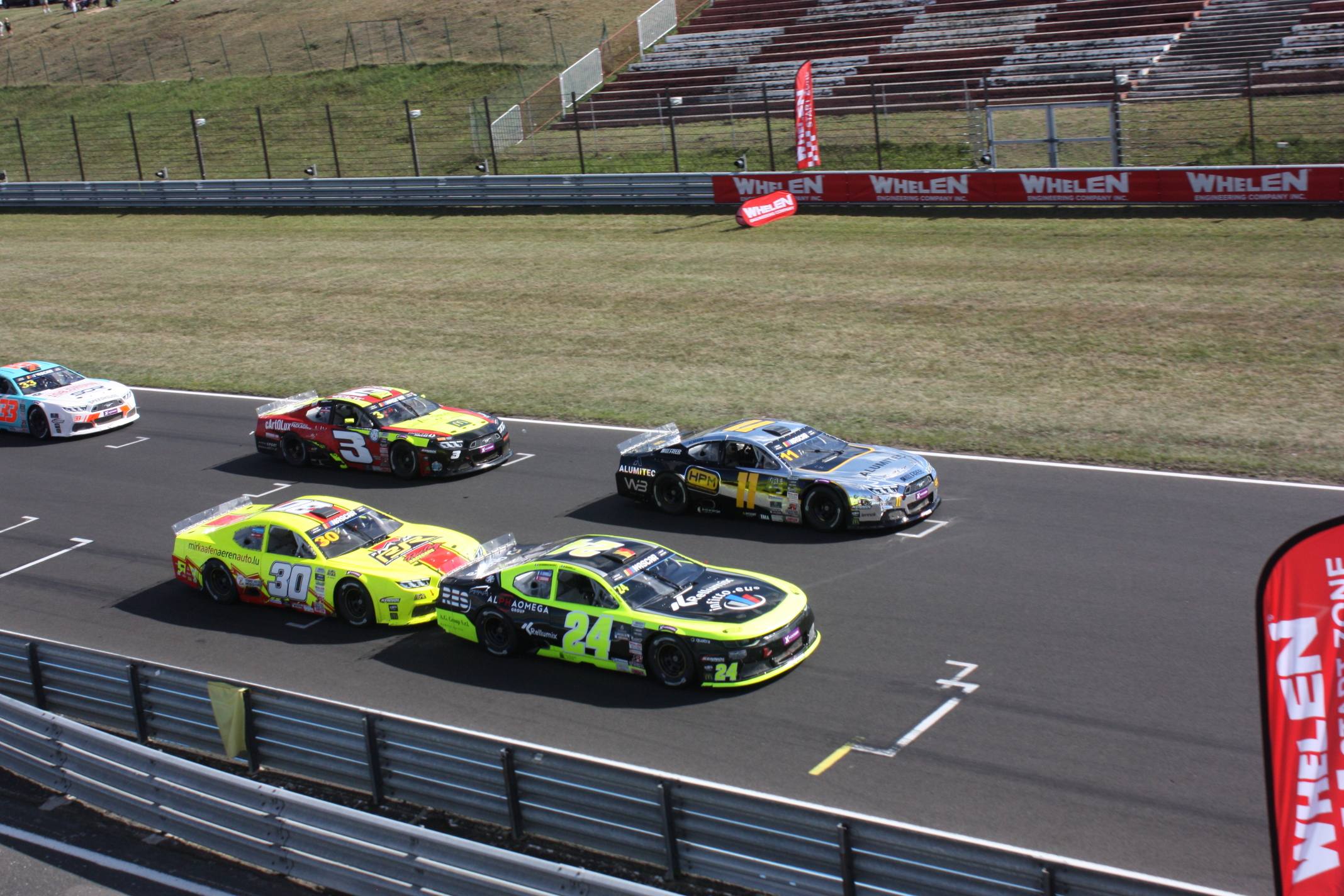 19 – Mostecká pomalá šikana po startovní rovince téměř při každém ze startů vyvolala mezi obrovitými siluetami NASCAR strkanice.