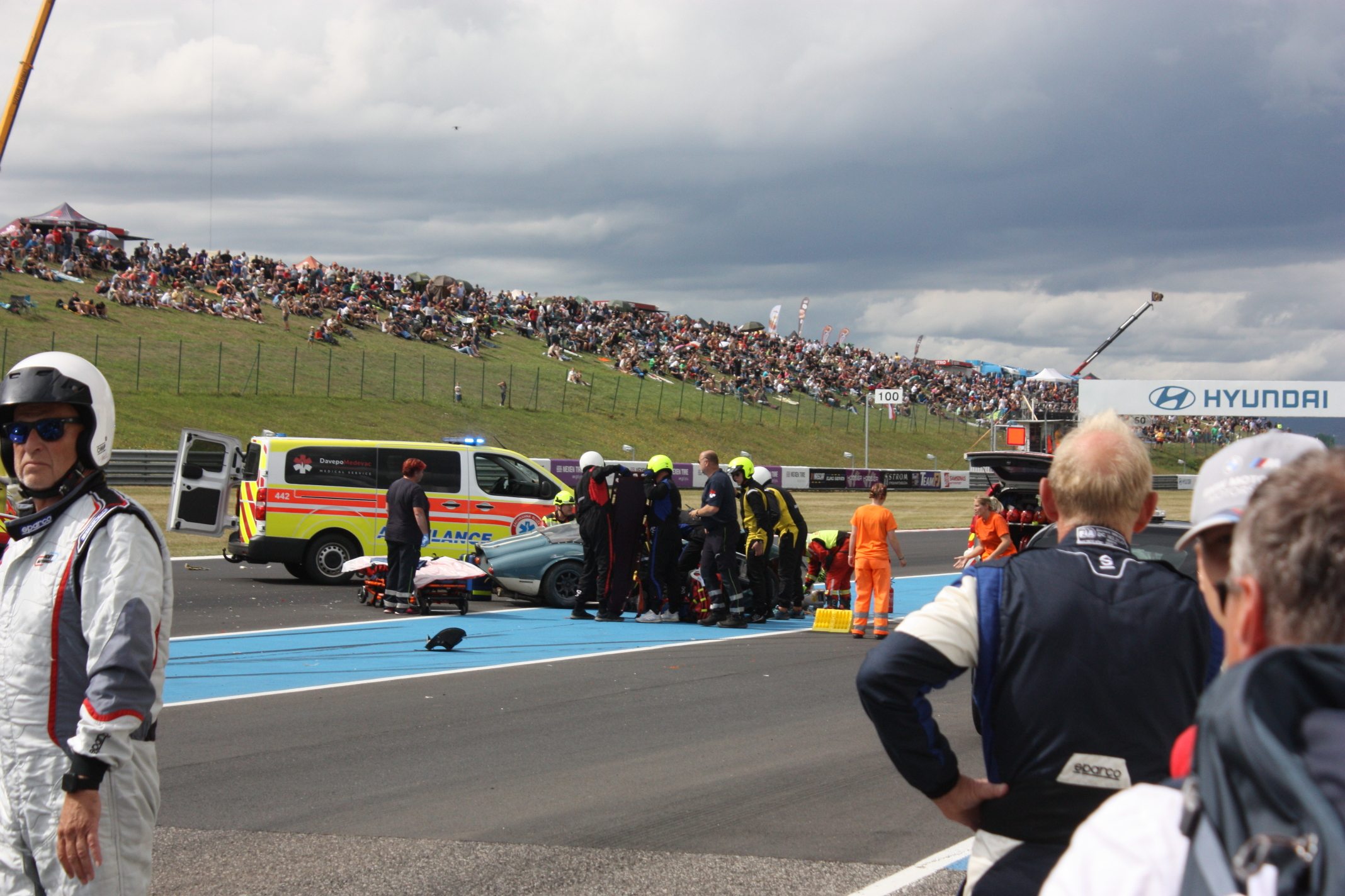 22 – Jediný nehezký okamžik víkendu: Zlá nehoda po startu veteránů GT se naštěstí obešla bez obětí.