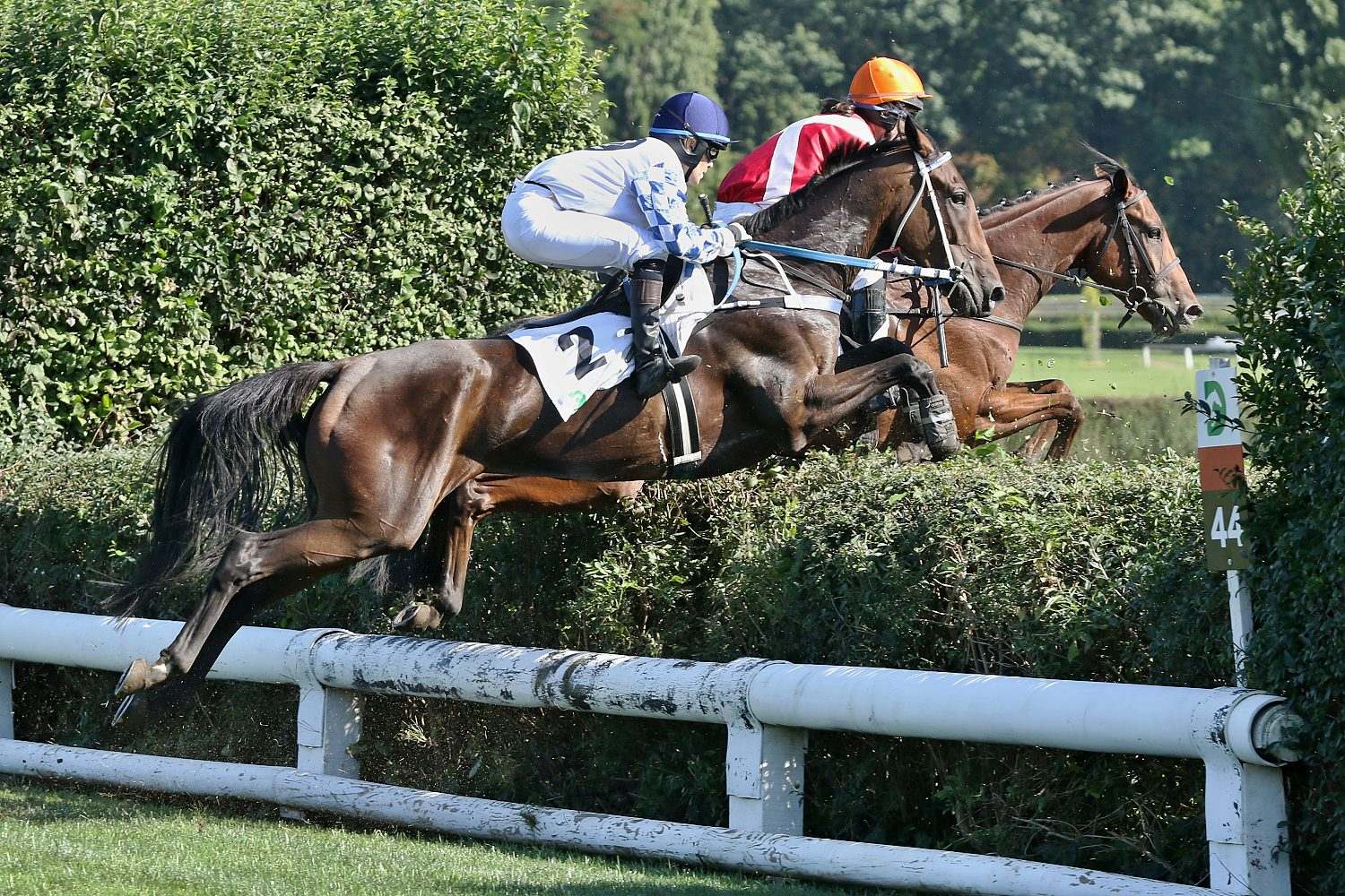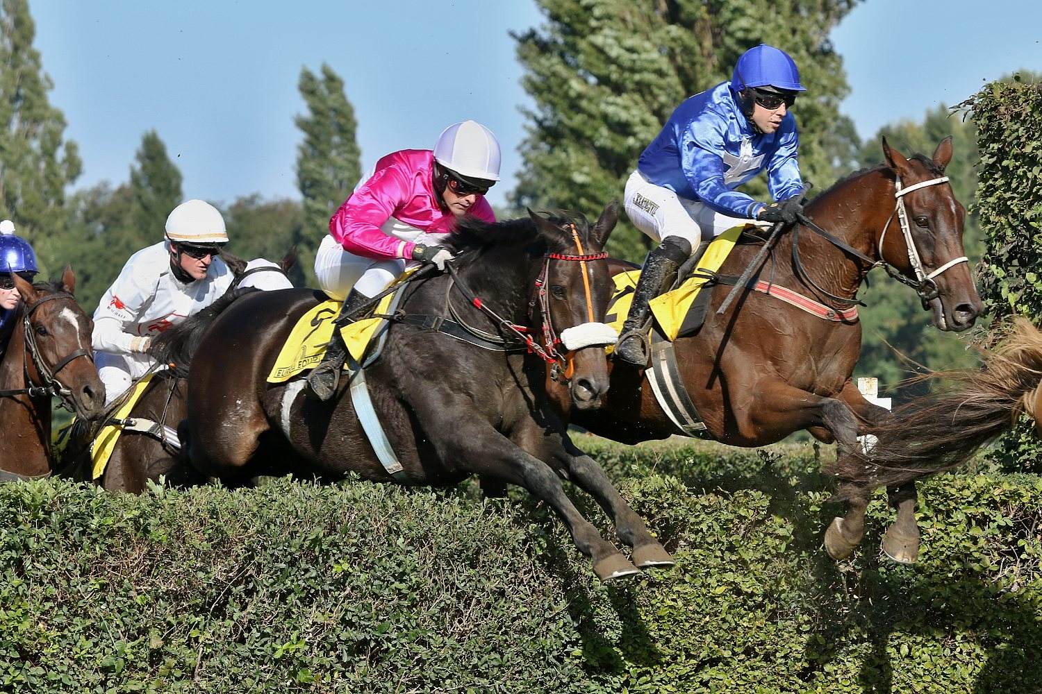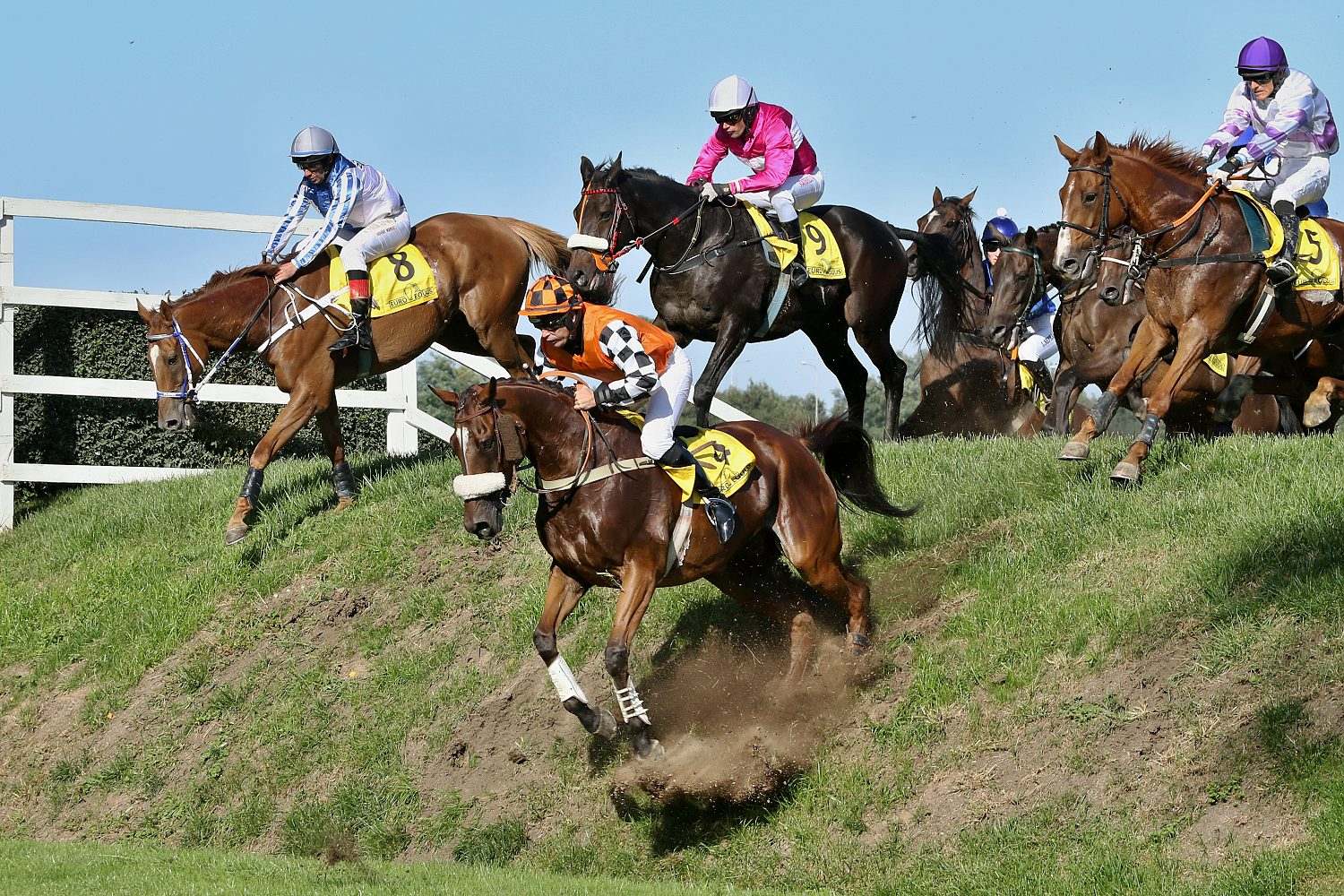 Do 4.kvalifikace-Velké ceny města Pardubic Euro Equus (STCC, NL, 5800 m.) -se vydalo 9 koní. První dva skoky v pomalém tempu vedl PLAYER (ž. M. Novák). Po Malé vodě vzal za tempo ENJEU D´ARTHEL (ž. M. Cagáň), který doslova přelétl Irskou lavici. Za Malými zahrádkami o vedení přišel, když pozdě zareagoval na točení vpravo k Anglickému skoku a propadl se společně se ZARATEm (ž. J. Kocman) na konec pole. Tam setrval až k Dropu, kde špatně doskočil a ž. M. Cagáň se poroučel ze sedla. Dostih opět vedl PLAYER, který ovšem nechal zadní nohy ve Velké vodě a propadl se. Hned na následujícím skoku pole opustil KAISERWALZER, jehož žokej L. Matuský se opět na podzim zranil tak nešťastně, že se bez něj bude muset obejít i Velká pardubická. Suchý příkop za lesem téměř zastavil valacha CAYRAS STAR (J. Borč), když v něm nechal zadní nohy. Zadržen byl nakonec před Velkým anglickým skokem. Na travnatý ovál točil první AENEAS (ž. J. Bartoš), následovaný PLAYERem a ZARATEm. V cílové rovině mělo plné šance všech 6 pokračujících koní. V její polovině se od ostatních razantně odpoutal AENEAS a vyhrál jistě o 6 délek před HIGH IN THE SKY (D. Vyhnálek). Třetí místo stihl těsně ZARATE, před útočícím DEL REYem (ž. J. Kratochvíl). Páté místo patřilo GODSALINOvi (L. Neprašová) a šesté PLAYERovi.