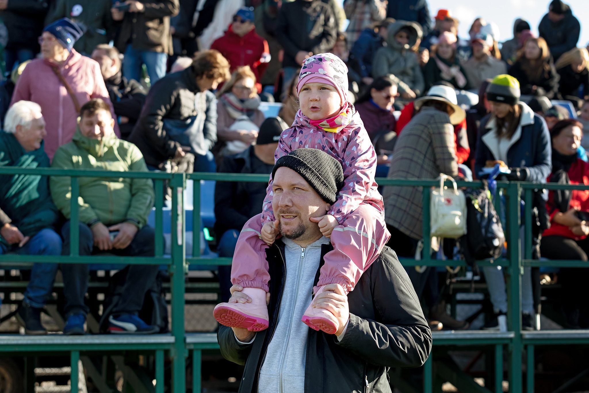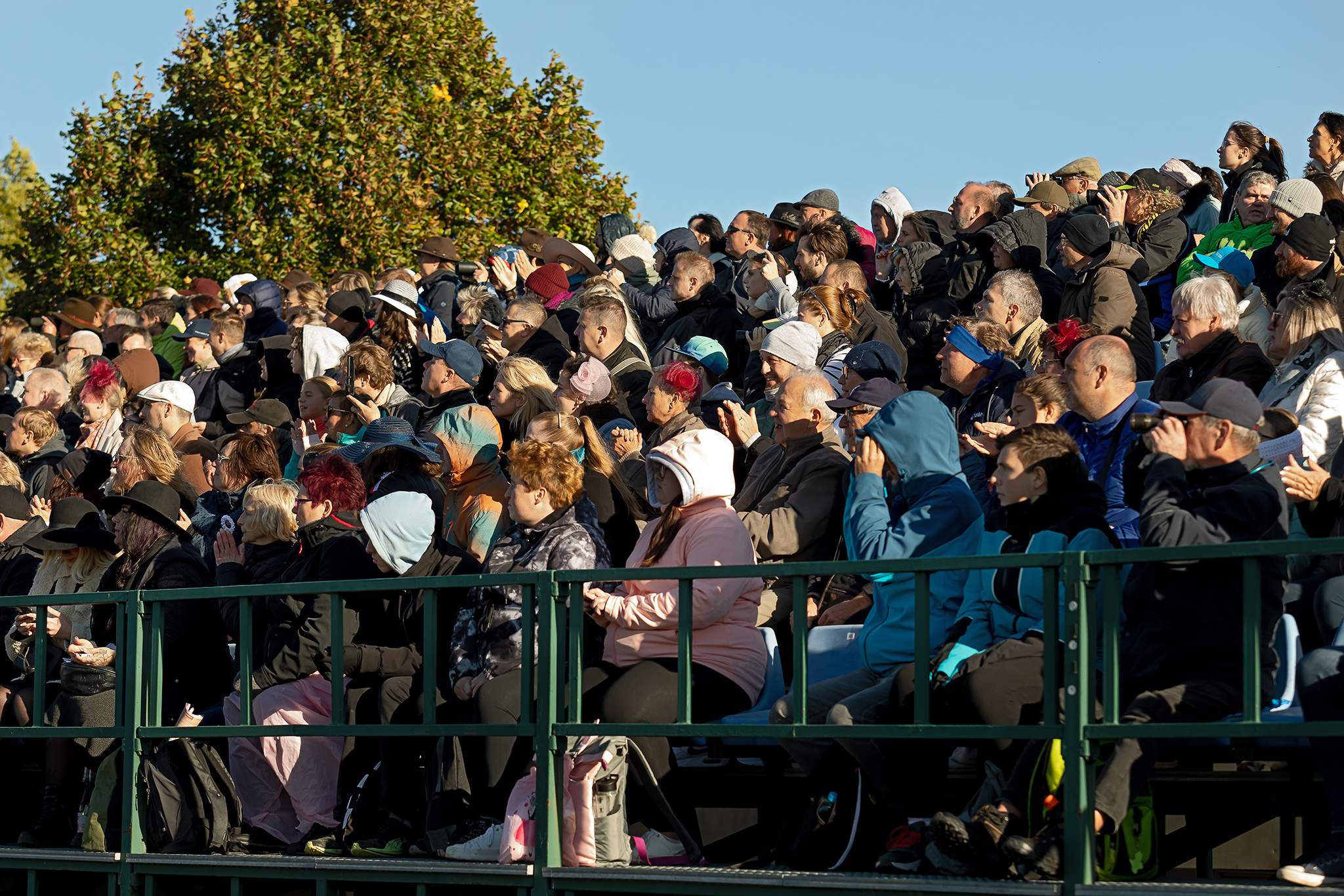 Hromový aplaus pokaždé, když koně projíždějí blízko tribun.